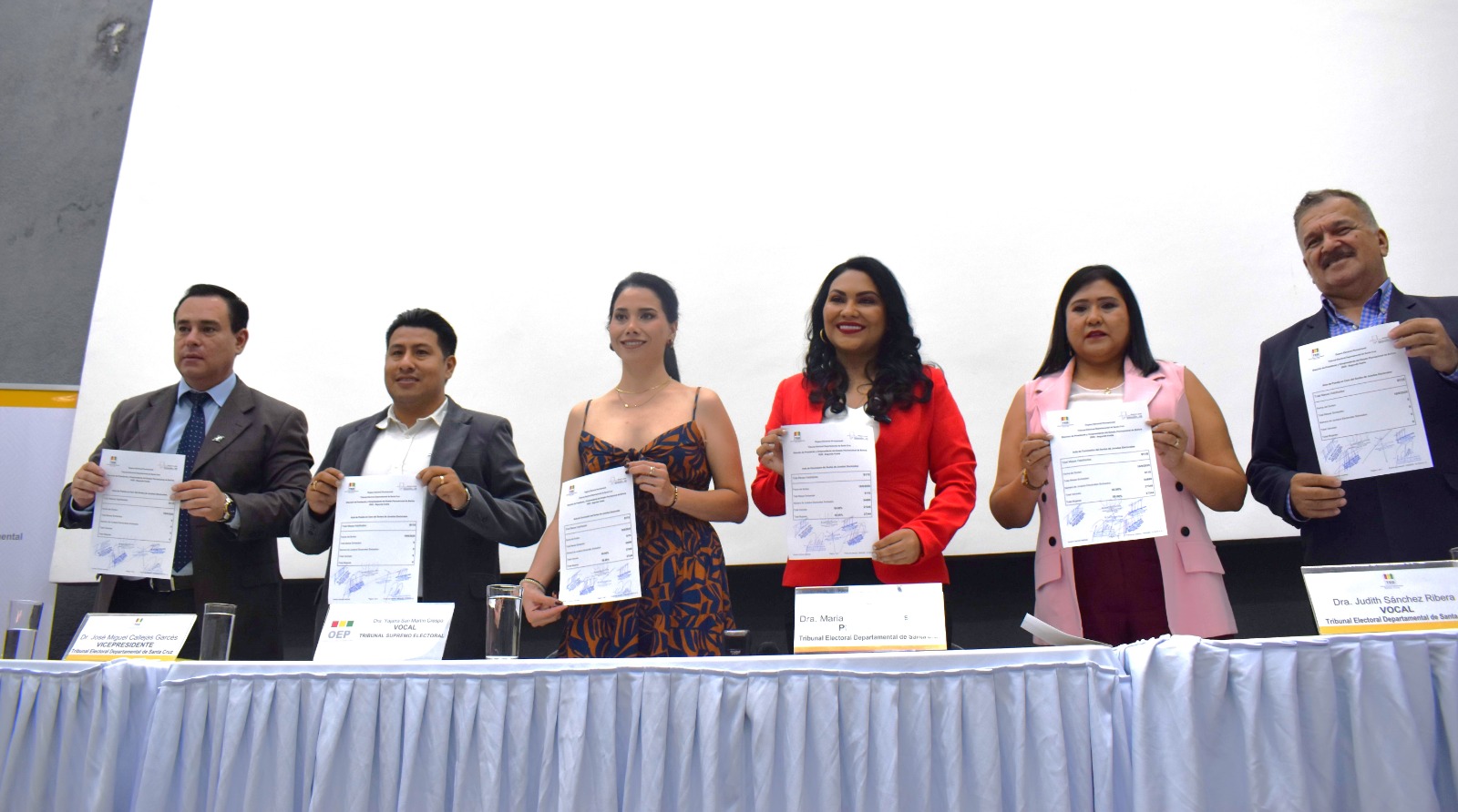 En el sorteo participaron la vocal del Tribunal Supremo Electoral (TSE), Yajaira San Martín, la presidenta del TED Santa Cruz, María Cristina Claros, el vicepresidente, José Miguel Callejas, los vocales Judith Sánchez, Saúl Paniagua y Marcelo Yabeta; además de la asesora técnica principal del proyecto de asistencia electoral del Programa de las Naciones Unidas para el Desarrollo (PNUD), Alessandra Rossi, y medios de comunicación.