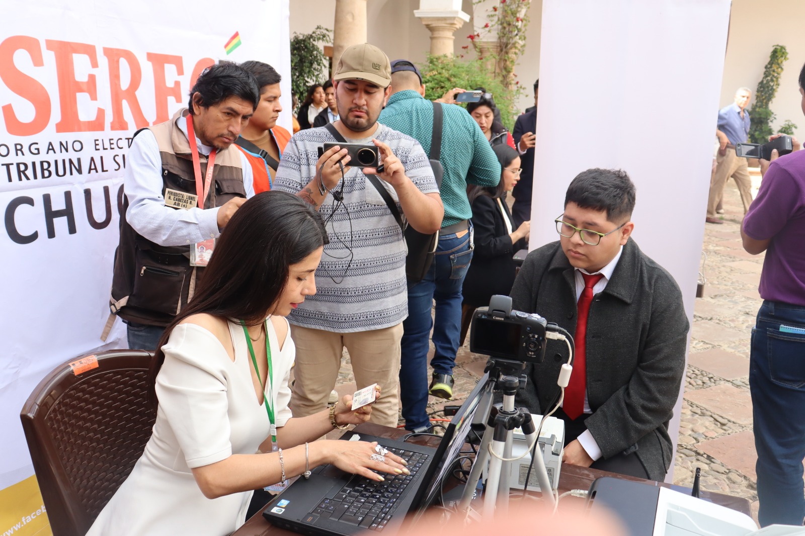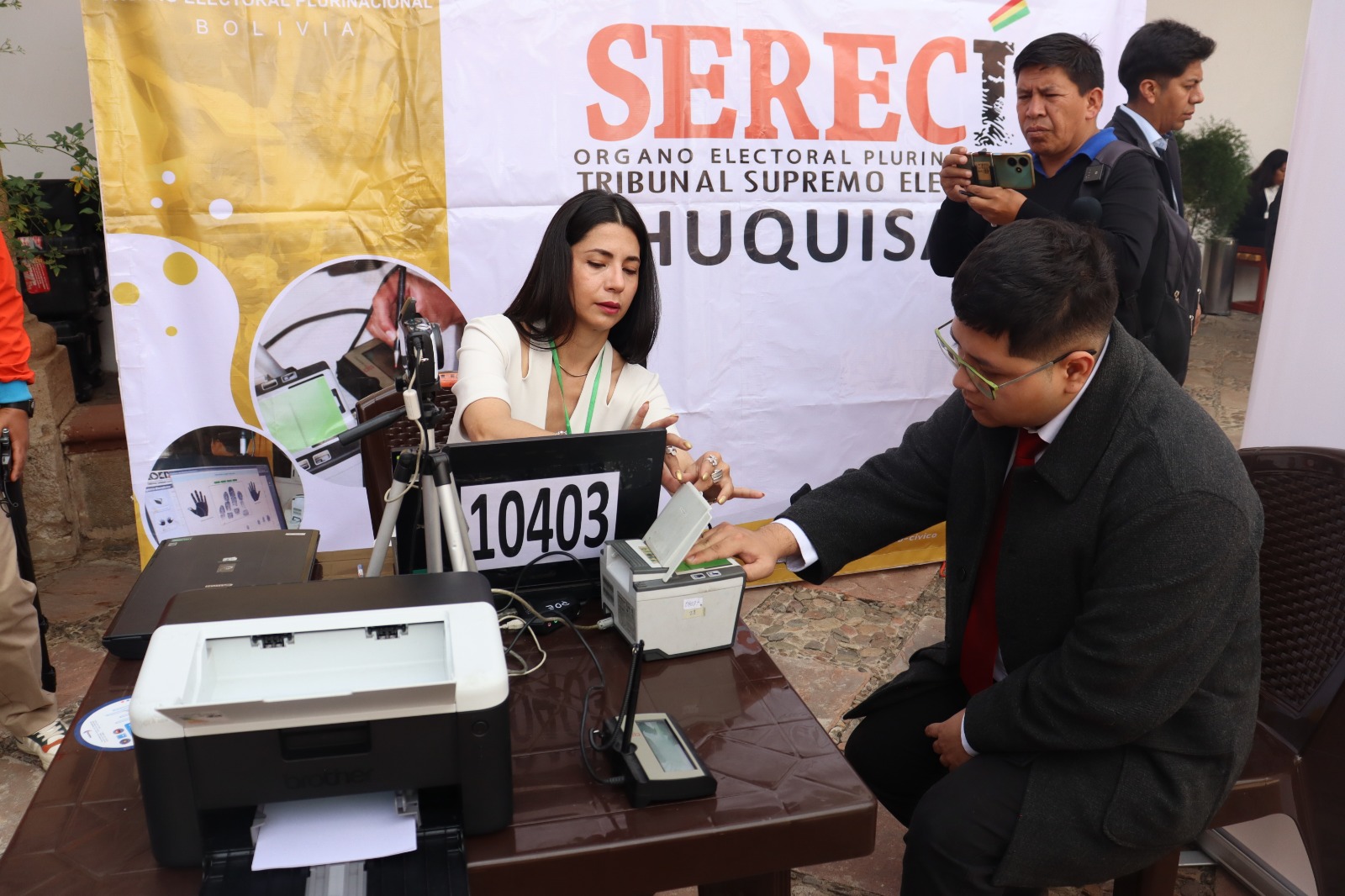 El Órgano Electoral Plurinacional (OEP), a través del Servicio de Registro Cívico (Serecí) Chuquisaca, dio inicio hoy al empadronamiento biométrico masivo con el objetivo de actualizar el Padrón Electoral Biométrico con miras a las próximas Elecciones de Autoridades Departamentales, Regionales y Municipales.