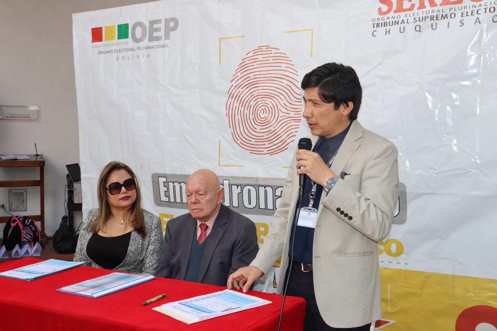 “El propósito es cubrir el 100 % de los asientos electorales de nuestro departamento”, afirmó el director del Serecí Chuquisaca, Ronald Roca, durante el acto de lanzamiento.
