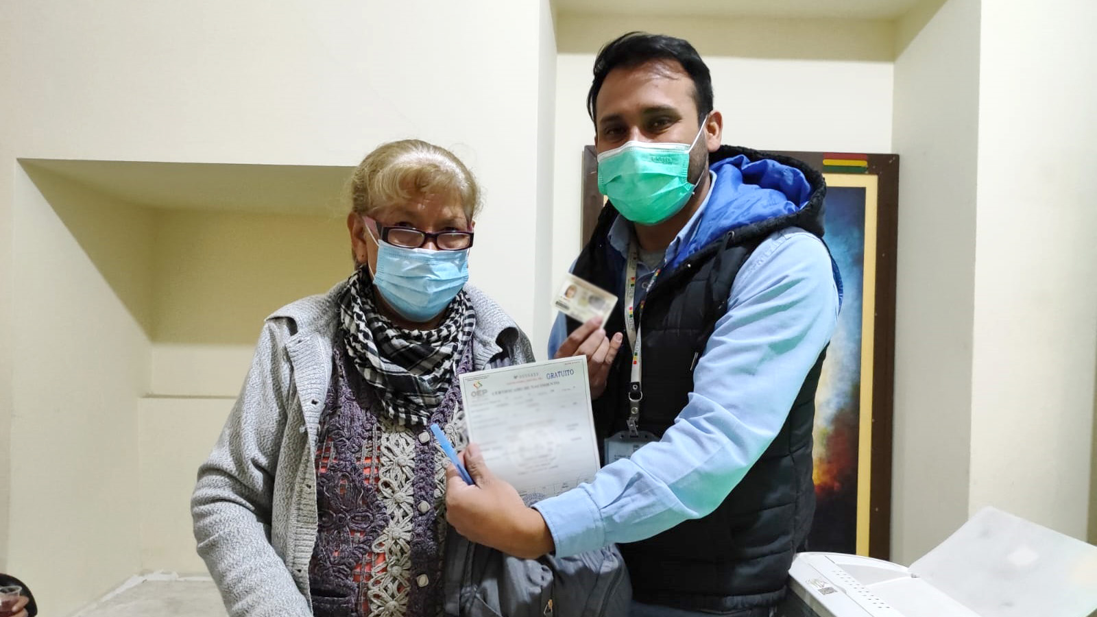Ciudadano recbe su certificado de nacimiento.