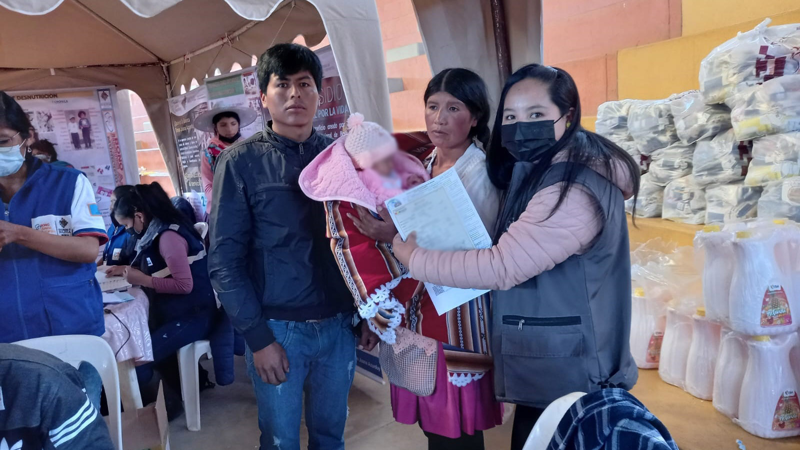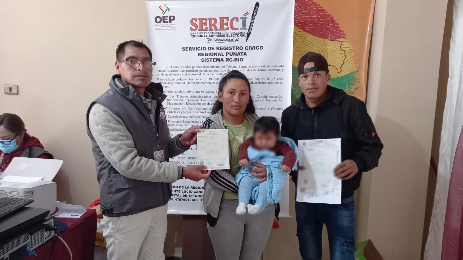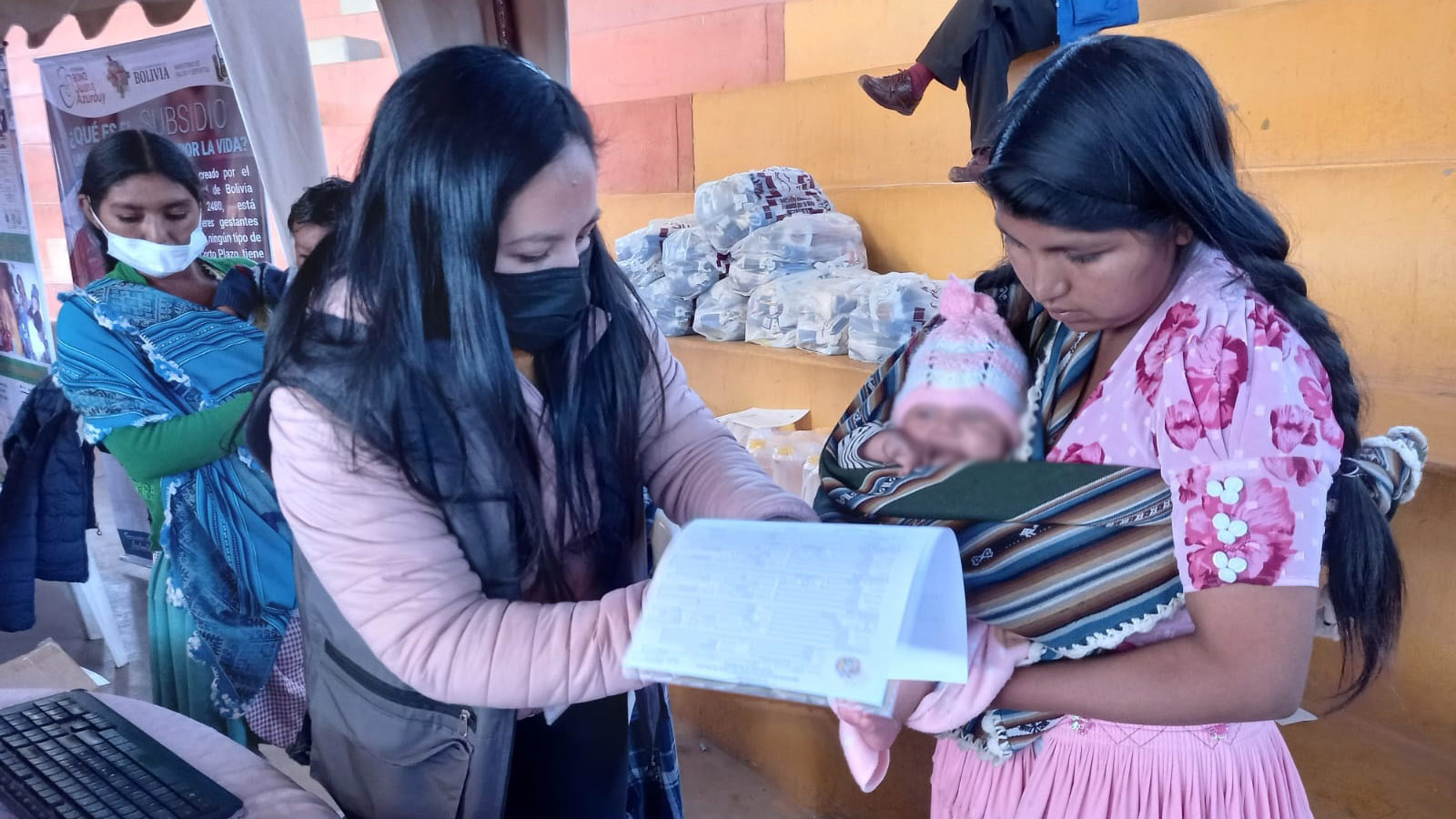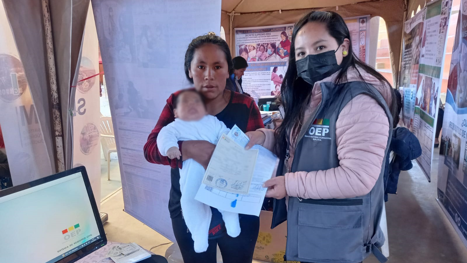 Técnica del Serecí Cochabamba registra a recién nacida para otorgarle su certificado de nacimiento gratuito.