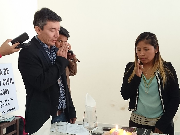 Pardo agradeció y ponderó el apoyo de las autoridades municipales y cívicas quienes de manera insistente procuraron el nombramiento de un nuevo oficial de registro civil, quien ejercerá sus funciones en ambientes facilitados por el Comité Cívico y contará con todo el mobiliario y conexión a internet.