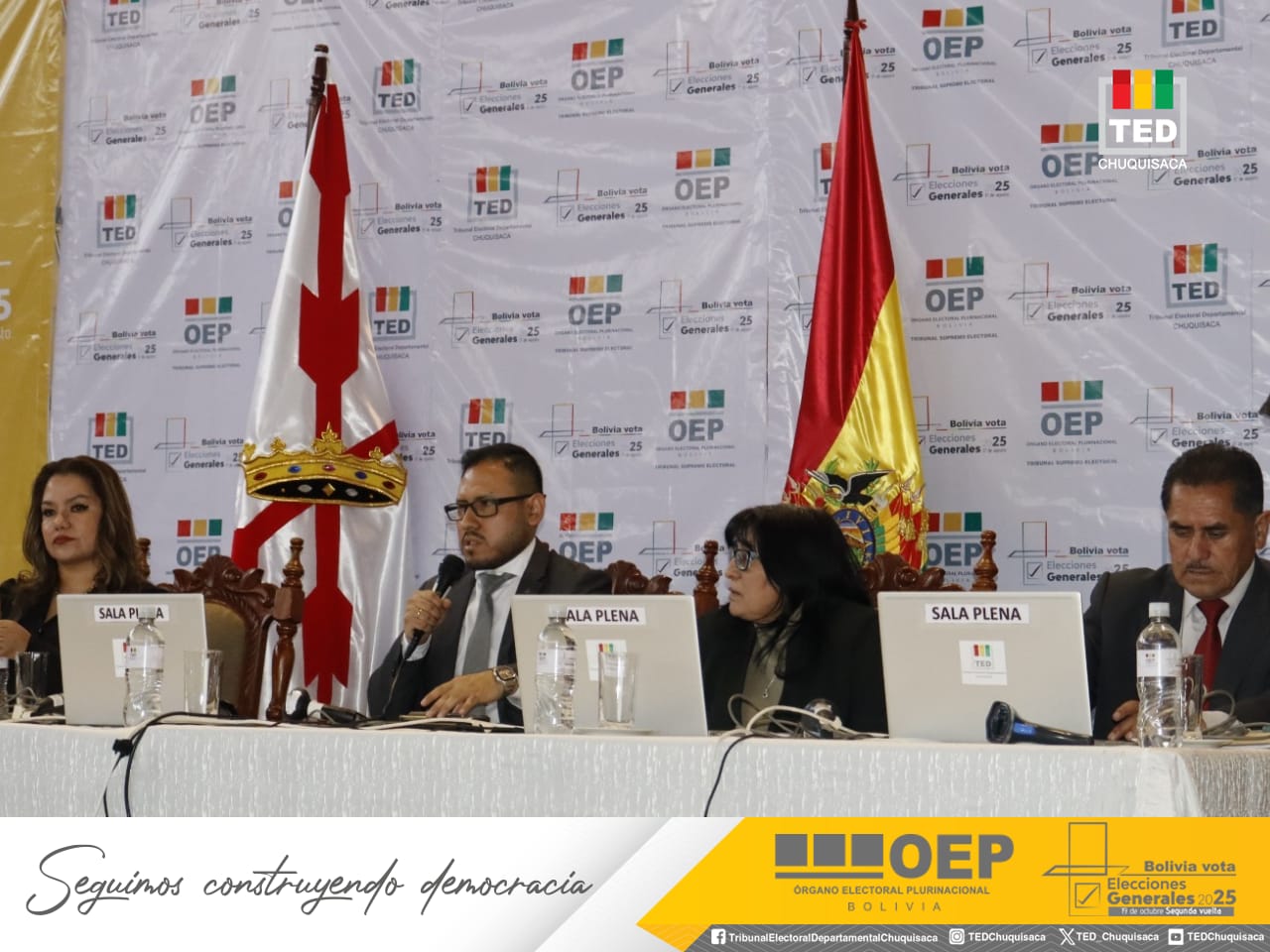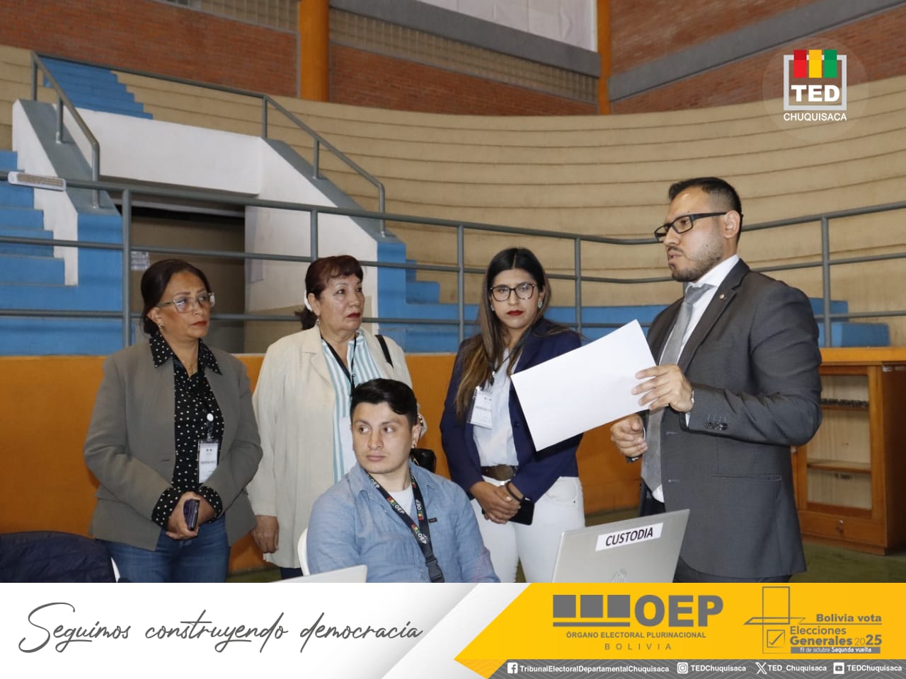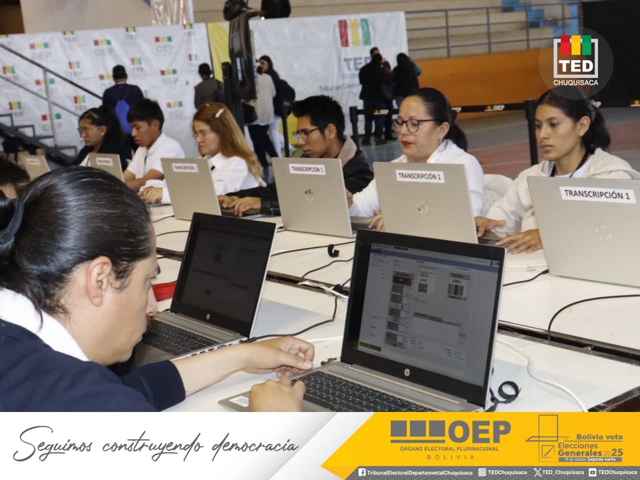A pocos días de la segunda vuelta, el Tribunal Electoral Departamental (TED) de Chuquisaca realizó este miércoles un simulacro de cómputo departamental con la presencia de medios de comunicación y delegados de las fuerzas políticas que participarán en la elección del 19 de octubre.