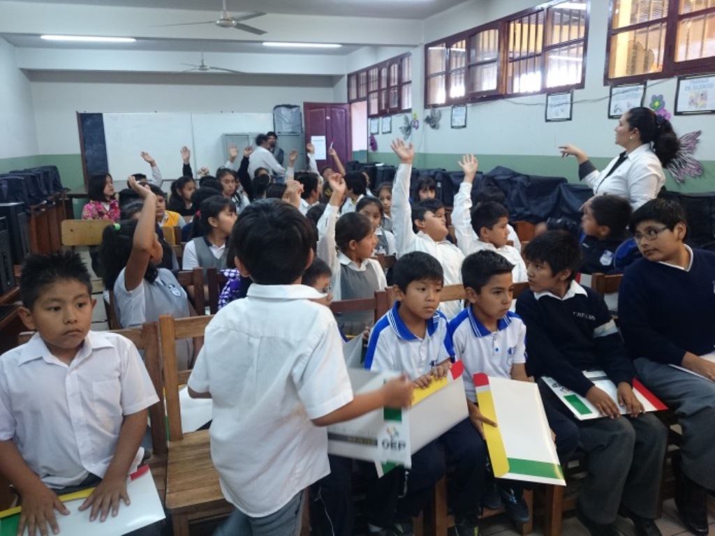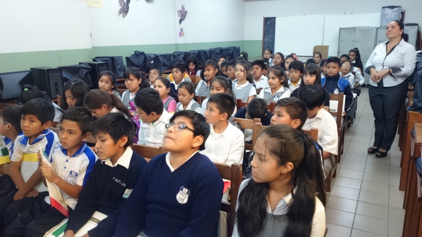 La capacitación se realizó el 14 de marzo en la unidad educativa. Las y los estudiantes, junto a sus maestras y el subdirector, mostraron mucha expectativa y participación dinámica durante la exposición efectuada por la Responsable del SIFDE en Tarija, Olivia Centellas. En la capacitación participaron estudiantes de los cursos de tercero, cuarto, quinto y sexto de primaria. De igual forma, se proporcionó material educativo sobre democracia y práctica de valores democráticos.