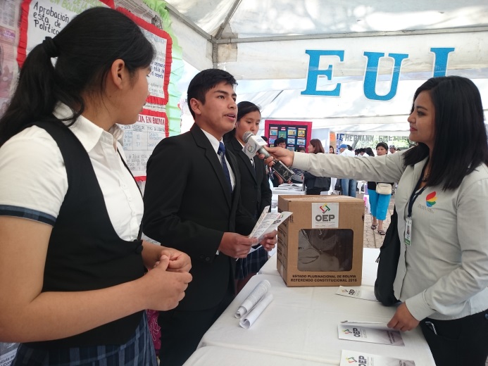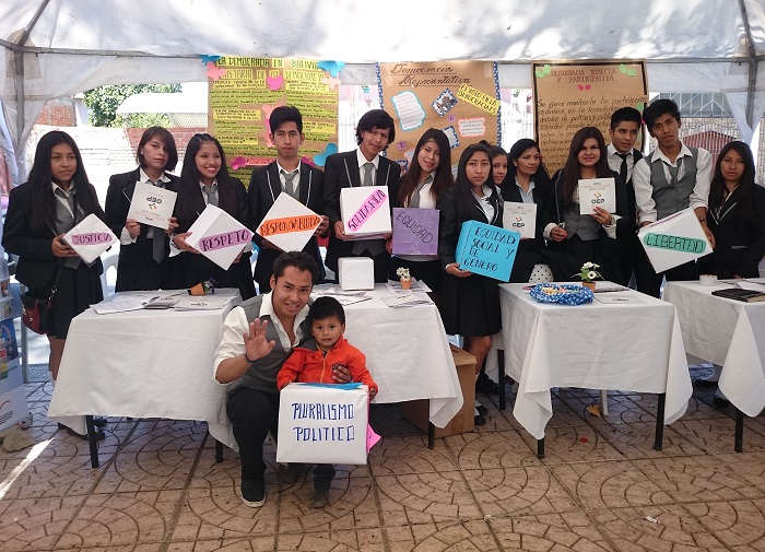 “La Democracia en Bolivia ha tenido una evolución y creo que ha sido un cambio muy importante y muy bueno para la sociedad. Por ejemplo antes no se les tomaba en cuenta a los indígenas, ahora sí”, expresó un estudiante de sexto de secundaria del colegio Eulogio Ruiz.
