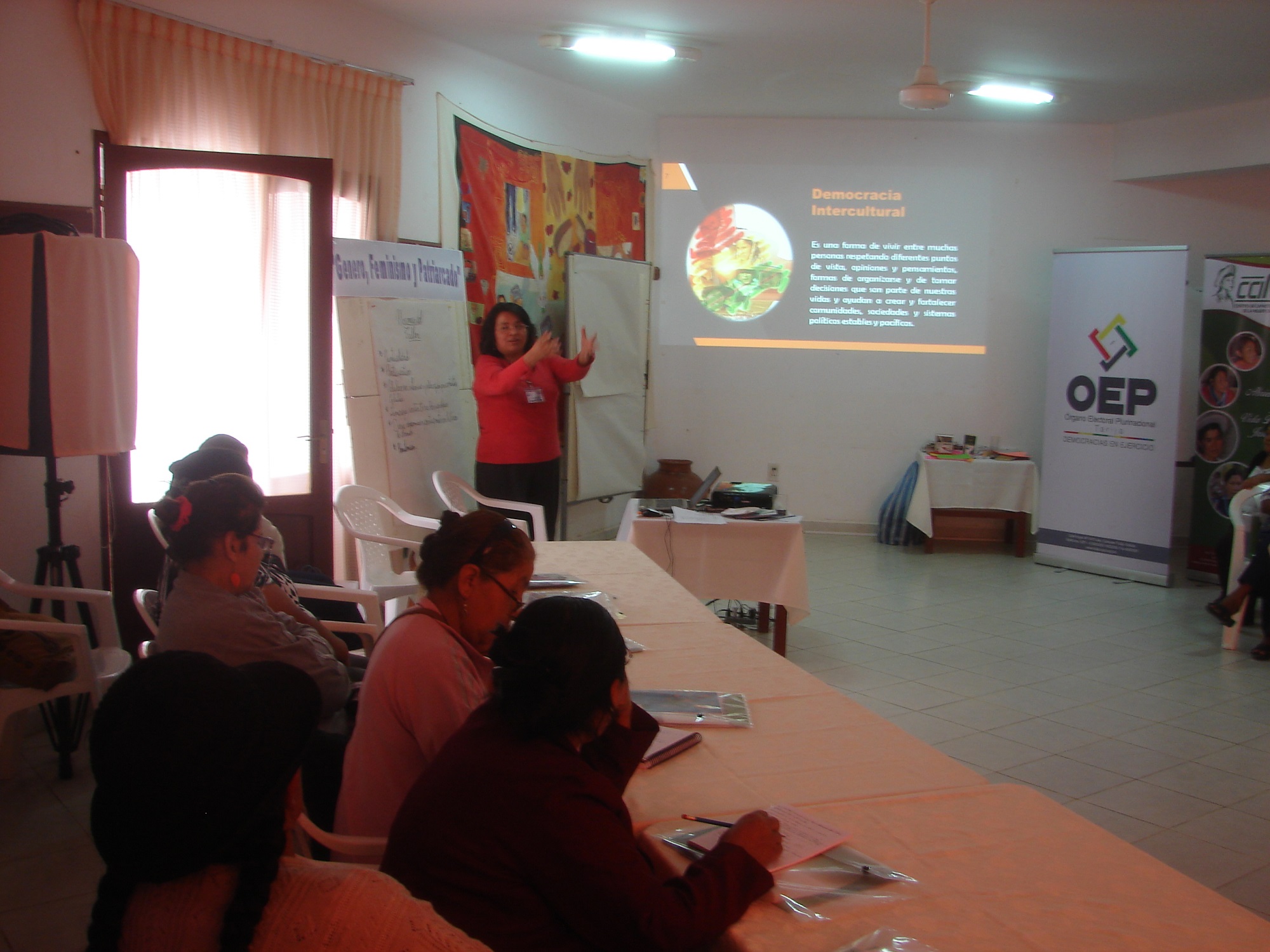 El encuentro se llevó a cabo en ambientes del Centro de Capacitación e Investigación de la Mujer Campesina (CCIMCAT). El TED Tarija explicó sobre las cuatro instancias que son protagonistas de este proceso y que son el Tribunal Supremo de Justicia, el Tribunal Agroambiental, el Consejo de la Magistratura y el Tribunal Constitucional Plurinacional, sobre su composición y atribuciones; las listas de candidatas y candidatos; y los derechos y deberes políticos de las personas y su participación en los procesos electorales.