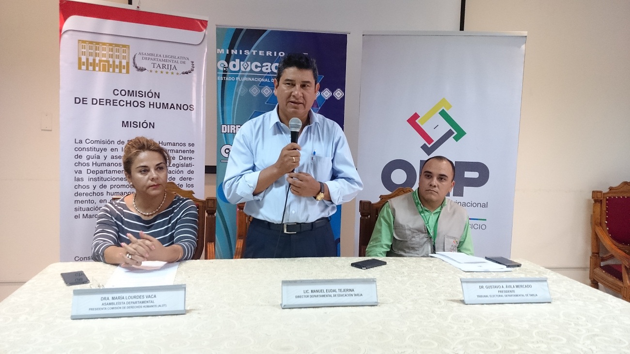 Por su parte, el Director Departamental de Educación, Eudal Tejerina destacó la articulación institucional en el marco de fortalecer los principios y valores democráticos en el sistema educativo.