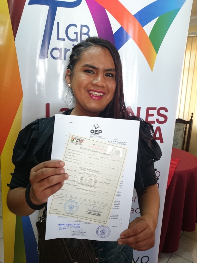“Hemos cumplido con el procedimiento en los plazos y documentación que se exige a la o el interesado. El trámite concluyó con la firma de la Resolución Administrativa que autoriza el cambio de nombre y dato del sexo. Posteriormente se emitió el Certificado de Nacimiento en favor de la ciudadana solicitante, por tanto ya puede ejercitar todos sus derechos establecidos en la Constitución y la Ley”, señaló Alberto Mealla.
