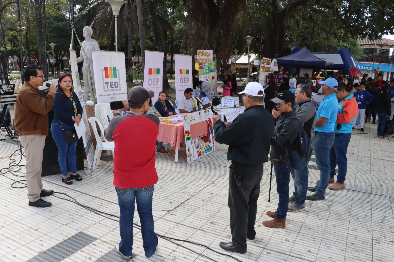 El secretario de Cámara del TED Beni, Einar Ramos, en la inauguración del evento resaltó la importancia de la actividad porque permite un contacto directo con la ciudadanía: “El Tribunal Supremo Electoral promociona la democracia intercultural, estamos presentes en esta plaza principal para dar a conocer a todos los ciudadanos lo que es la democracia y los mecanismos de participación democrática en todos los procesos electorales, esto gracias a los convenios que tenemos con varias instituciones como la Universidad Autónoma del Beni y el Segip”, puntualizó Ramos.