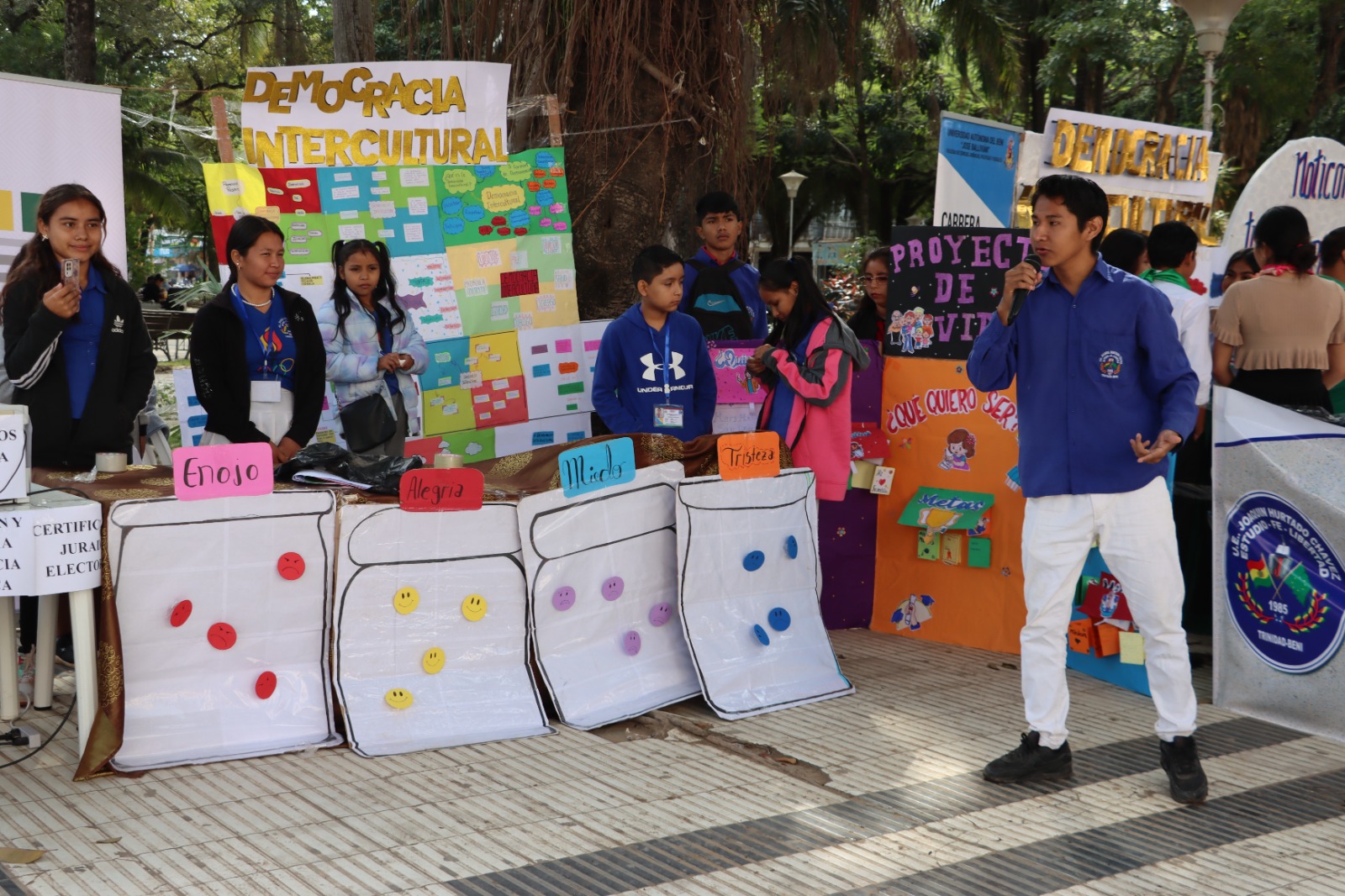 Las carreras de Ciencias de la Educación y Ciencias de la Comunicación Social de la Universidad Autónoma del Beni José Ballivián fueron parte de la feria con ponencias y actividades educativas en torno al tema de la democracia intercultural; también la unidad educativa Joaquín Hurtado estuvo presente con presentaciones sobre la diversidad y la importancia de la democracia para el país.