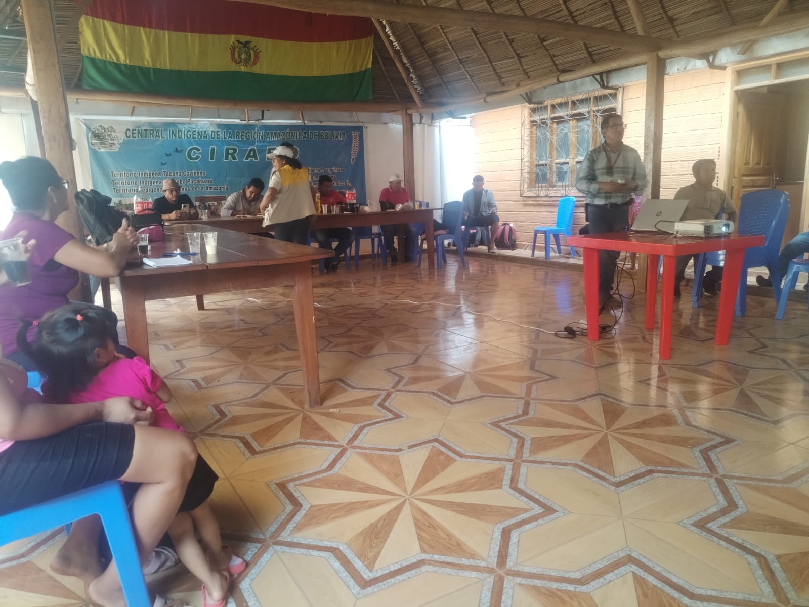 El primer taller tuvo lugar en la Central Indígena de la Región Amazónica de Bolivia (CIRABO) en Riberalta, donde se presentó un panorama sobre las leyes que protegen a las mujeres contra la violencia y acoso político, se destacó la importancia del conocimiento de las normas de parte de las autoridades, para que estas ejerzan sus derechos en sus respectivas comunidades