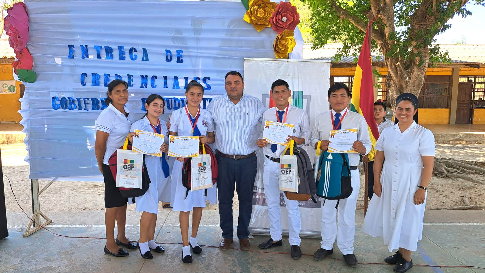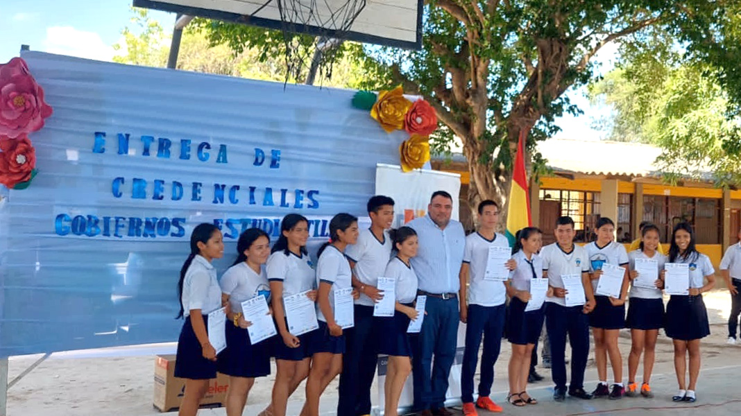 En el evento participaron el vocal del TED Beni, Carlos Ortiz, el Representante de la Dirección Distrital de Educación, directoras y directores, maestras y maestros, miembros de los 32 gobiernos estudiantiles que se conformaron con la vigencia de mandato de un año de gestión.