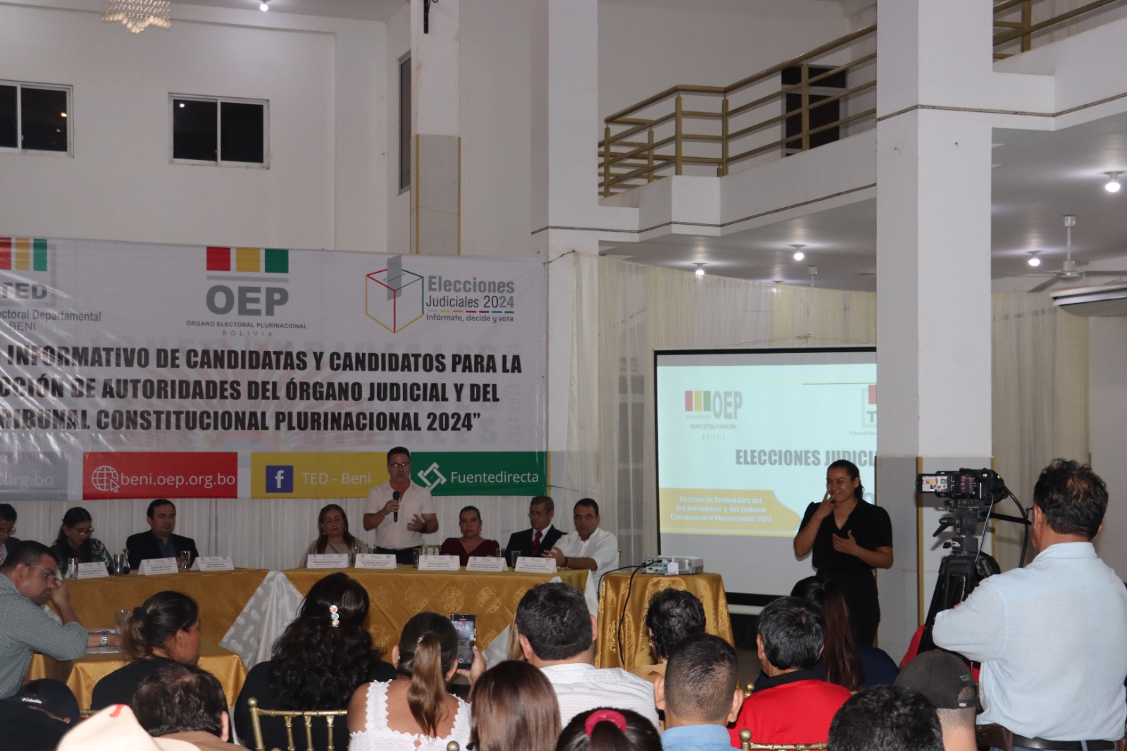Este martes 22 de octubre, el Tribunal Electoral Departamental (TED) del Beni desarrolló el primer Foro Informativo de Candidatas y Candidatos para la Elección de Autoridades del Órgano Judicial y del Tribunal Constitucional Plurinacional.