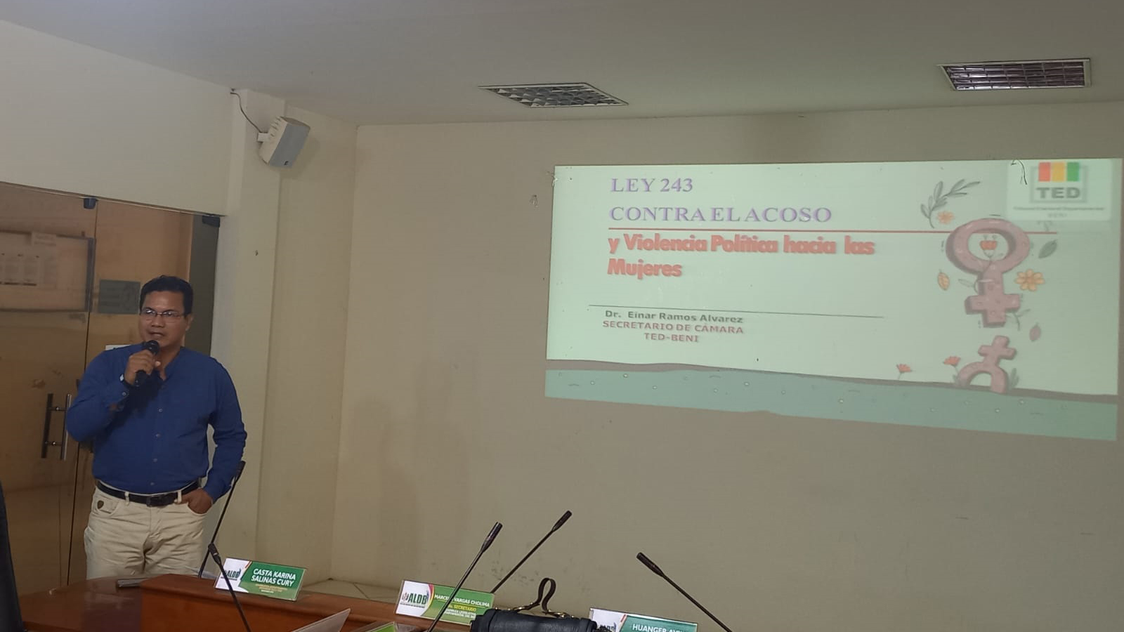 Este 13 de septiembre, el Tribunal Electoral Departamental (TED) del Beni participó en el taller sobre la Lucha contra el Acoso y Violencia Política hacia las Mujeres, desarrollado en ambientes de la Asamblea Legislativa Departamental. El objetivo fue contribuir a la organización, representación y el fortalecimiento de la participación política de la mujer en la gestión pública.
