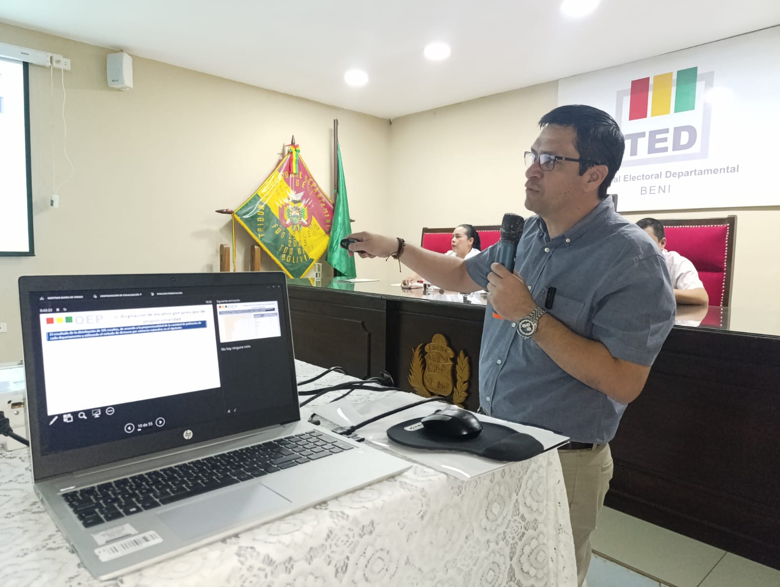 El Tribunal Electoral Departamental del Beni (TED Beni), a través de su Sala Plena, llevó a cabo este miércoles 27 de marzo una jornada de socialización sobre la distribución de escaños parlamentarios y la delimitación de circunscripciones uninominales para las Elecciones Generales 2025. El evento tuvo lugar en el salón auditorio Guillermo Caballero Saucedo, del TED Beni, en horas de la mañana.