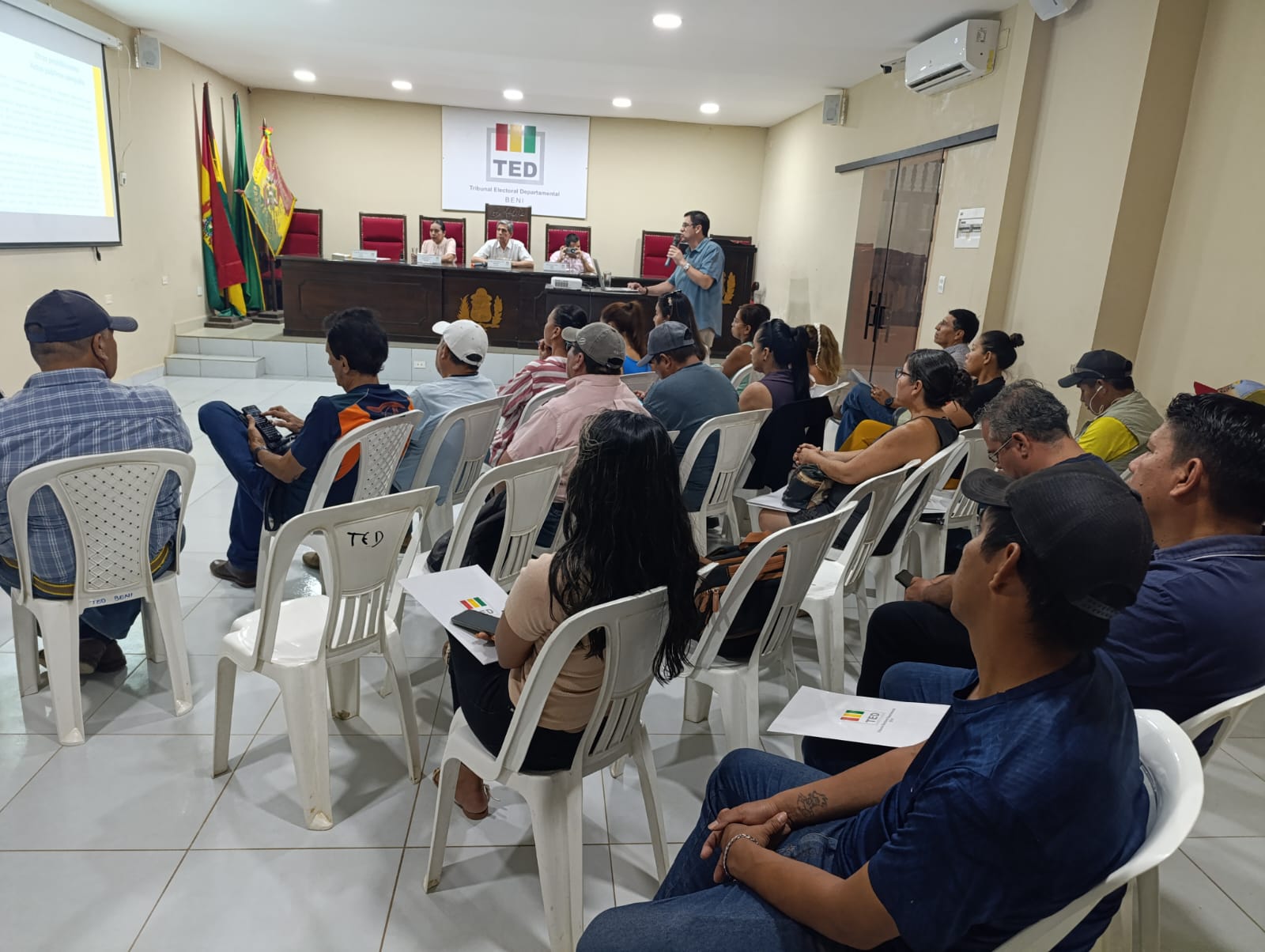 La actividad se desarrolló en el salón auditorio del TED Beni, en dos sesiones diferenciadas: el jueves 15 de mayo en horas de la mañana, con la participación de delegadas y delegados de organizaciones políticas del departamento, y el viernes 16 en horas de la tarde, con la asistencia de representantes de medios de comunicación locales.