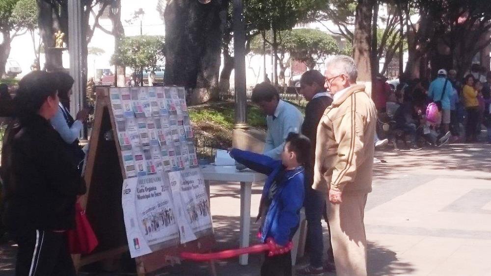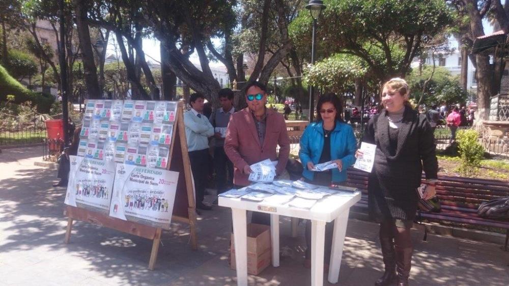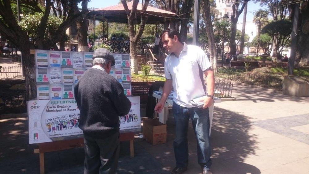 Para esto, los Vocales TED de Chuquisaca habilitaron ayer un punto de información en la Plaza 25 de mayo, de la ciudad de Sucre, para socializar información sobre lo qué implica el referendo autonómico del proyecto de Carta Orgánica Municipal de Sucre, y así coadyuvar a que la ciudadanía asuma una decisión informada.