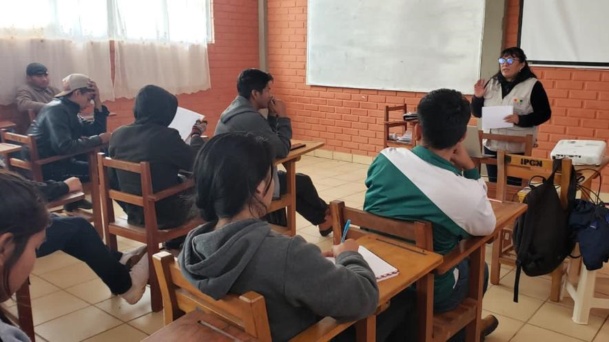 El ciclo de capacitación impartido a los alumnos de esta casa de estudios contó con la participación de la vocal del Servicio Intercultural de Fortalecimiento Democrático (Sifde), Lidia Rivas, del TED Chuquisaca, quien al respecto expresó: “Este es el tiempo en que todos deben aprender sus derechos políticos y democráticos, para ejercer con justicia en lo posterior, porque aquí están nuestros futuros líderes y los que dirigirán nuestro país en breve”.