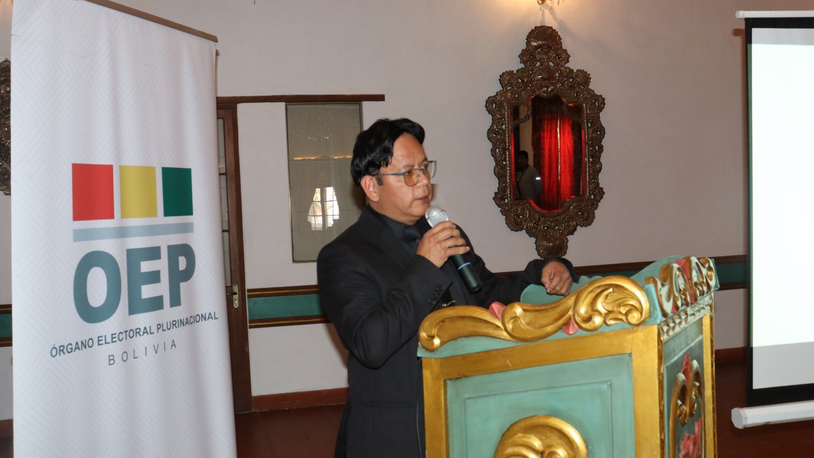 Presidente del TED Chuquisaca, Edil Martínez a momento de inaugurar la capacitación.