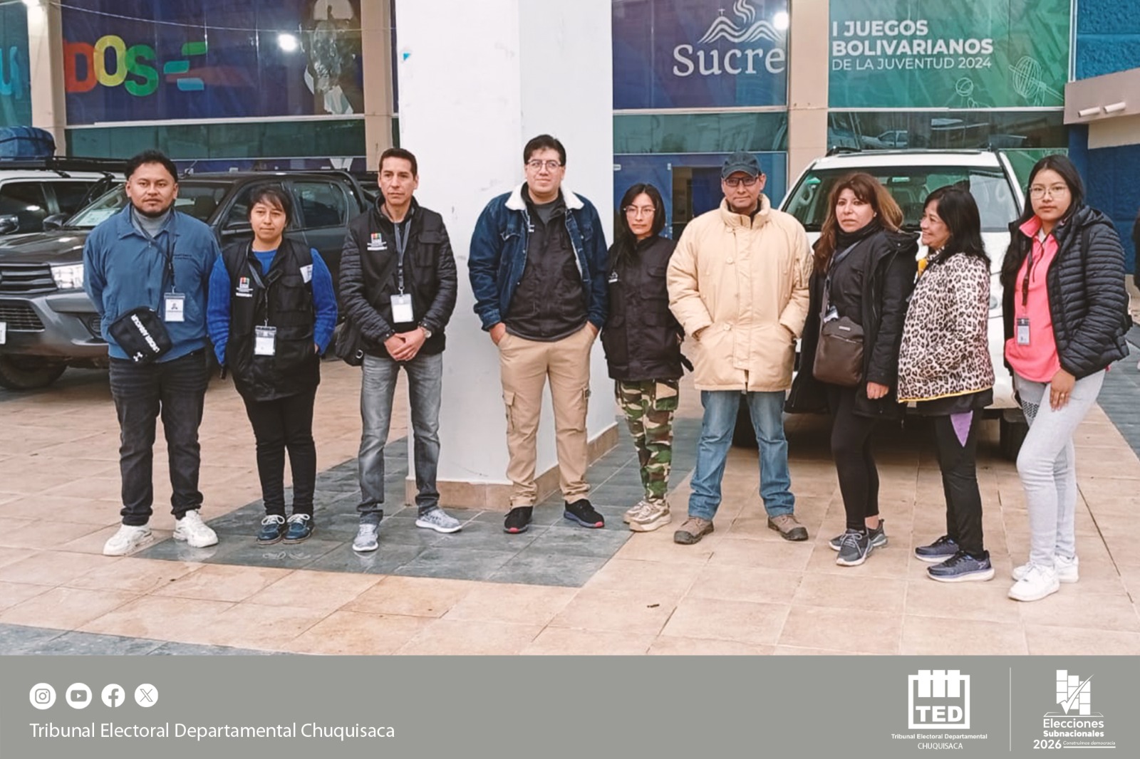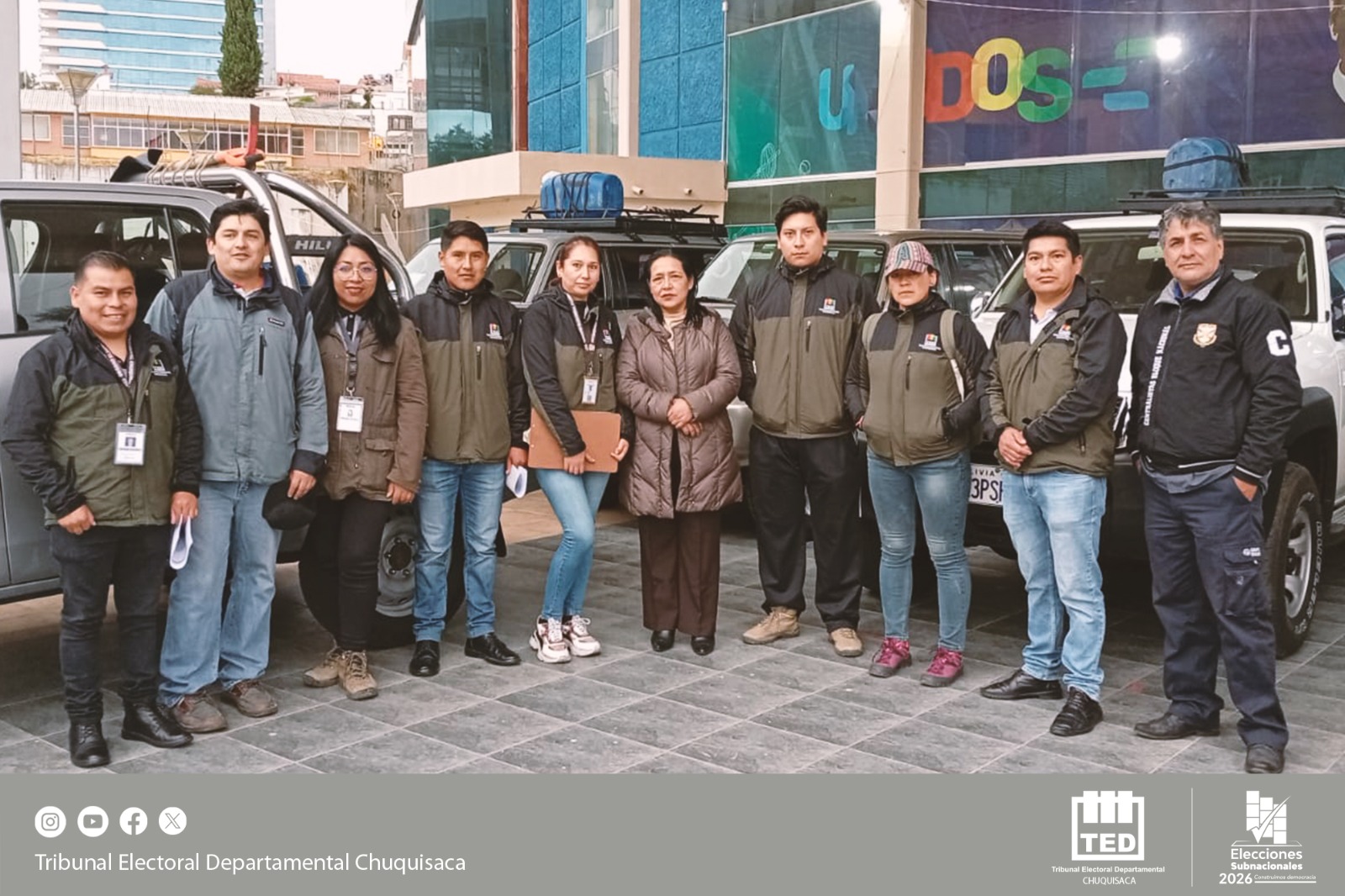 El martes 24 de febrero, el Tribunal Electoral Departamental (TED) de Chuquisaca desplegó 23 brigadas de la Unidad de Geografía y Logística Electoral (UGLE), conformadas por funcionarios que tienen a su cargo la inspección de los recintos electorales en las circunscripciones 3, 4 y 5 del departamento.