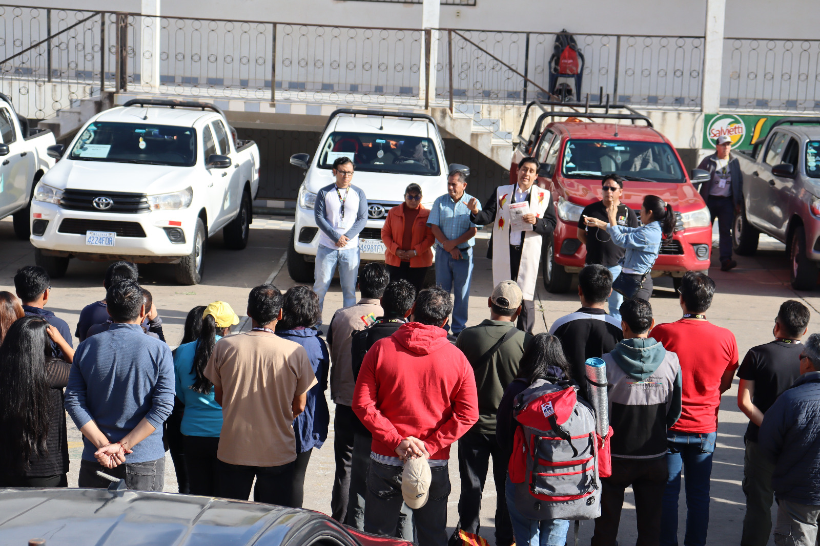 El presidente del TED Chuquisaca, Gunnar Vargas, junto al vicepresidente Edil Martínez y los vocales Lidia Rivas y Mauricio Del Río, fueron los encargados de dar las recomendaciones a los equipos conformados por técnicos de la Unidad de Geografía y Logística Electoral, facilitadores y capacitadores del Servicio Intercultural de Fortalecimiento Democrático (Sifde) de Chuquisaca, quienes se desplazaron al área rural del departamento este domingo 17 de noviembre.