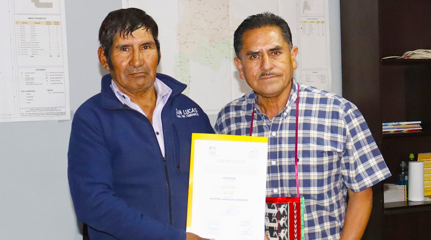 El presidente a.i. del TED Chuquisaca, Edil Martínez, resaltó la importancia de la entrega de este documento a Onofre Anagua y Primitivo Ibarra, quienes quedan habilitados para asumir funciones legislativas en su región: “Conforme habían solicitado a través de su delegado de organización política, la Sala Plena ha dispuesto emitir las credenciales como concejales titulares del municipio de San Lucas”, manifestó Martínez.