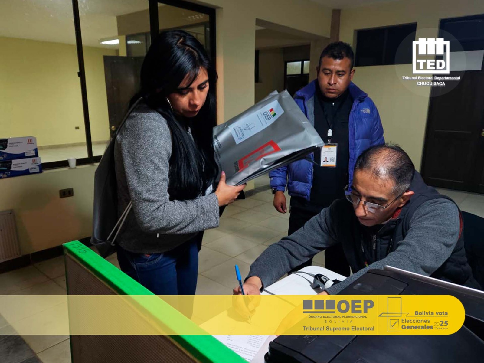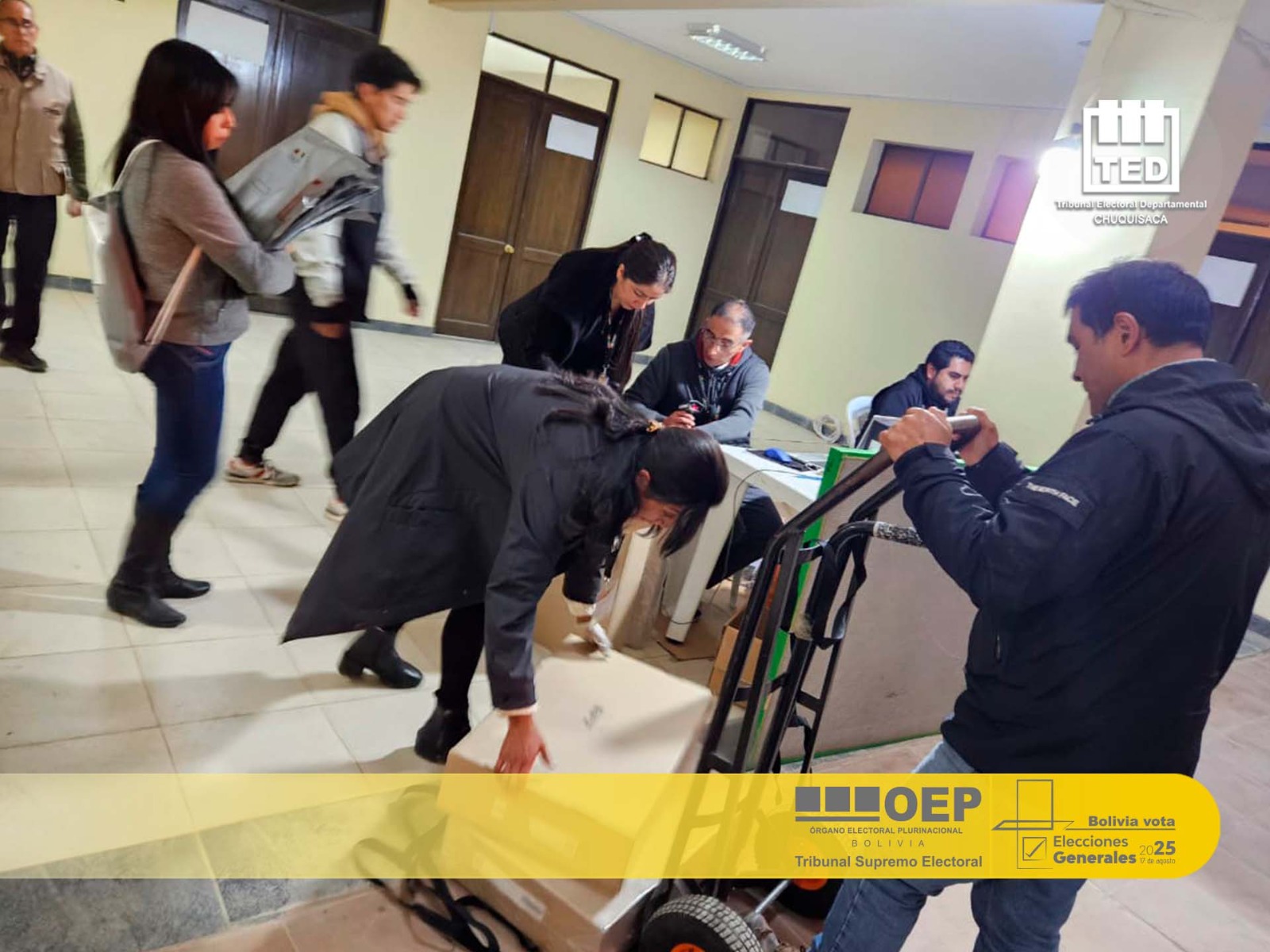 A las 18:00 de la jornada electoral se instaló la Sala Plena del TED Chuquisaca en el Centro Departamental de Logística (CDL), ubicado en el coliseo Max Toledo. Sin embargo, se declaró un cuarto intermedio a la espera del arribo de una mayor cantidad de actas electorales.