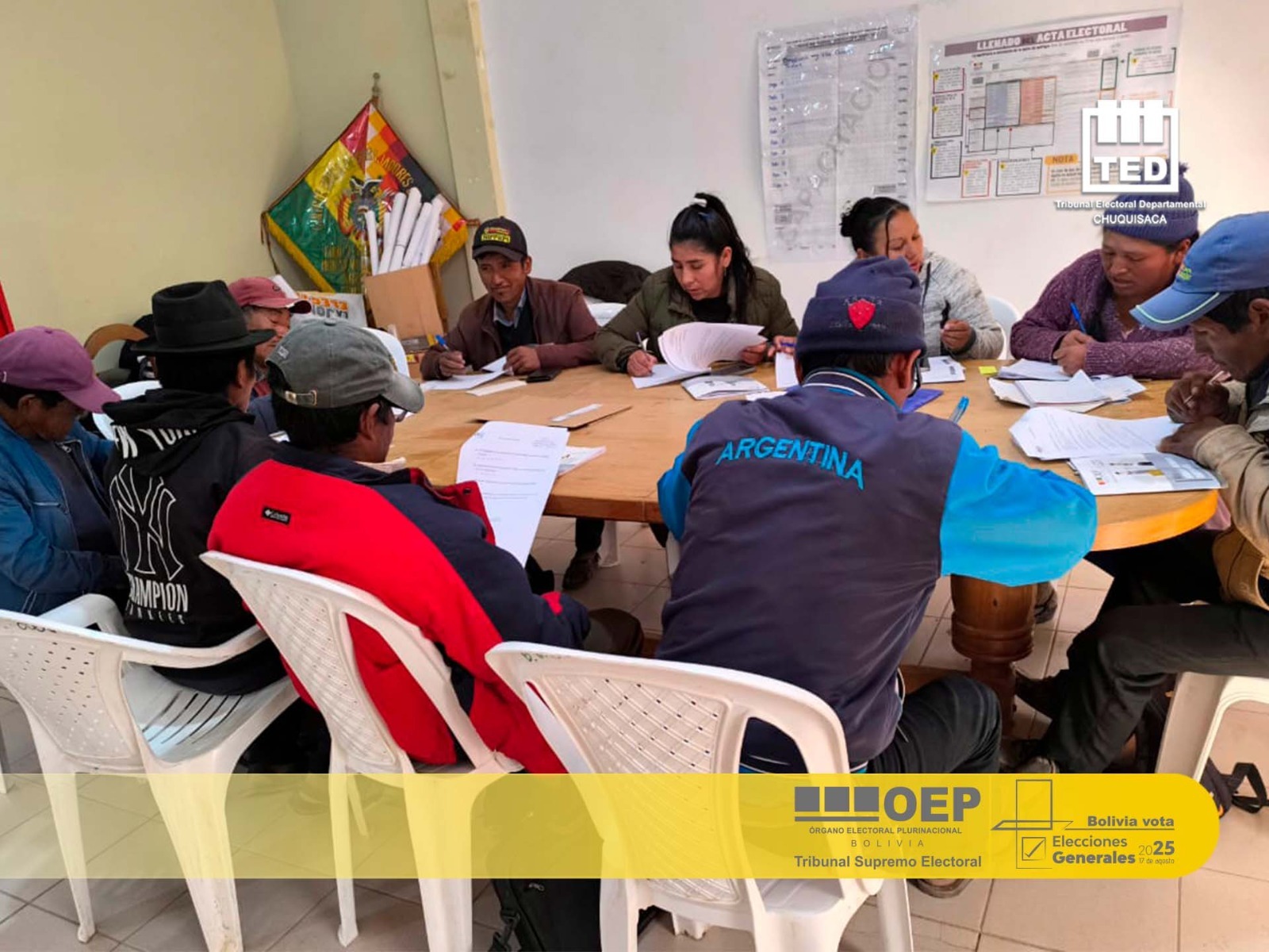“Convocamos a todos los jurados electorales a participar de las capacitaciones y a estar adecuadamente preparados para las Elecciones Generales del 17 de agosto. Ser jurado electoral es un deber cívico muy importante pues son las máximas autoridades de la mesa de sufragio a donde todos acudiremos para ejercer nuestro derecho al voto”, afirmó el presidente del TED Chuquisaca, Mauricio del Río.