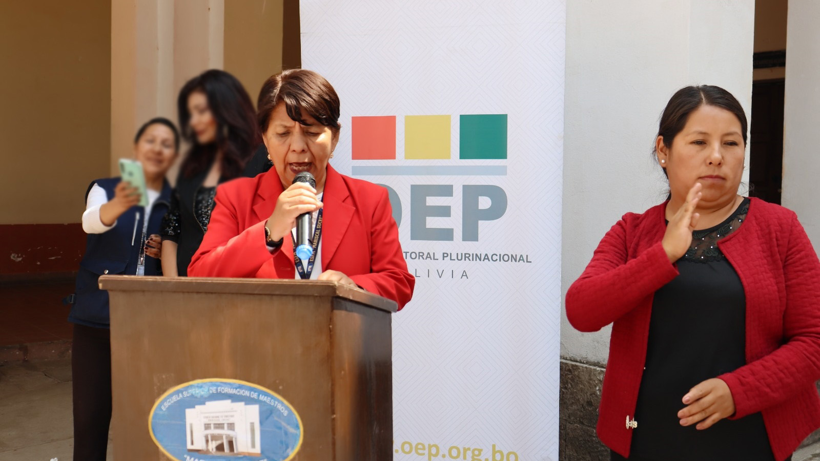 La directora académica de la ESFM Mariscal Sucre, Elizabeth Uzagaste, dijo que “es un grato placer tener estas oportunidades en las que podemos debatir, conocer, analizar y reflexionar sobre el tema de la democracia intercultural y los distintos tipos de democracia que tenemos en Bolivia, la ESFM Mariscal Sucre, se engalana al tener a los más pequeños y hemos podido apreciar que cuando se cantaba el himno nacional y nuestra intérprete también lo entonaba, ellos imitaban sus movimientos y los niños siguen nuestro ejemplo”, manifestó.