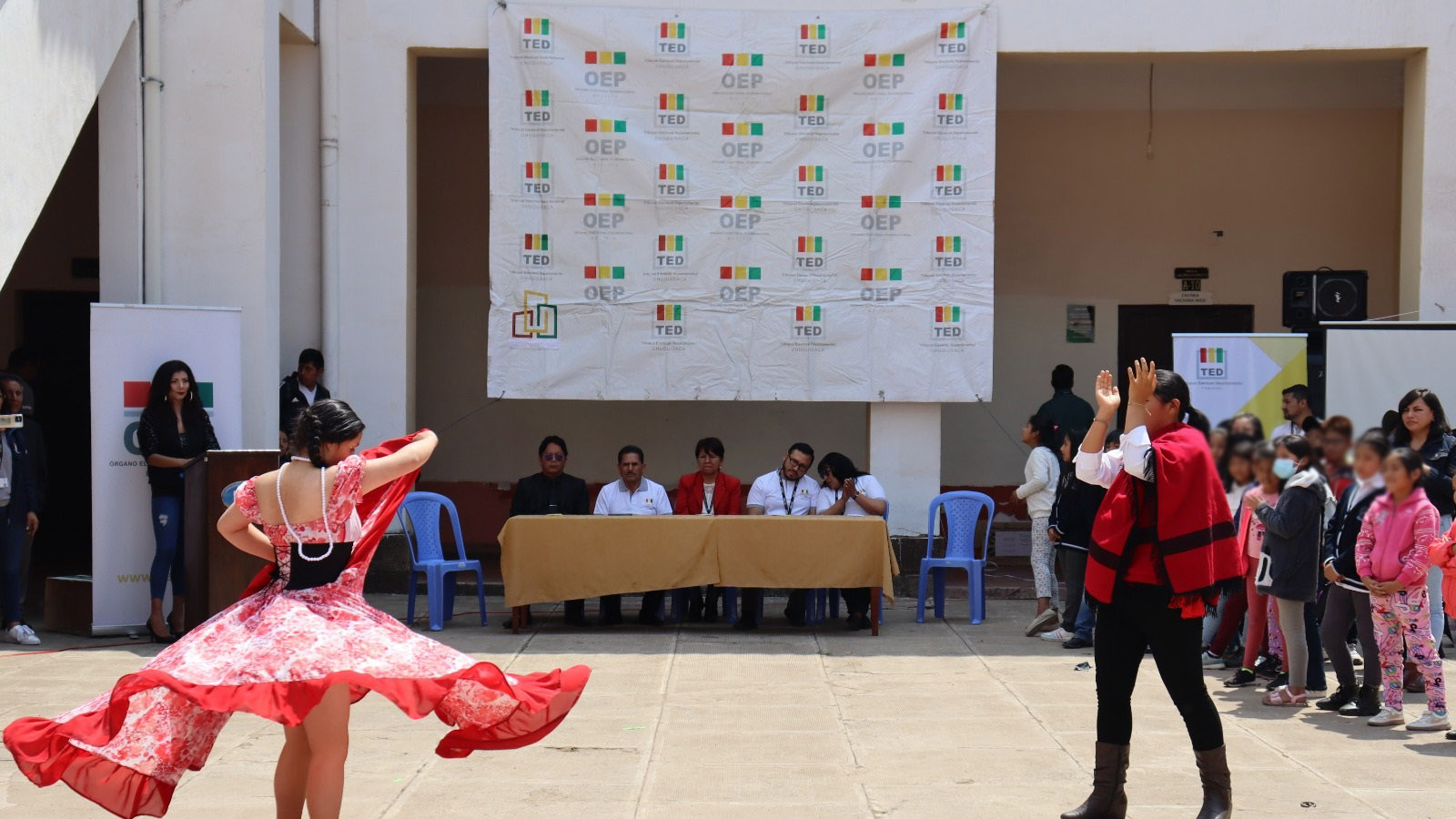 El Tribunal Electoral Departamental (TED) de Chuquisaca, a través del Servicio Intercultural de Fortalecimiento Democrático (Sifde), realizó este miércoles 18 de octubre la feria educativa sobre la democracia intercultural, como parte de las actividades programadas para conmemorar los 41 años de recuperación de la democracia en Bolivia.