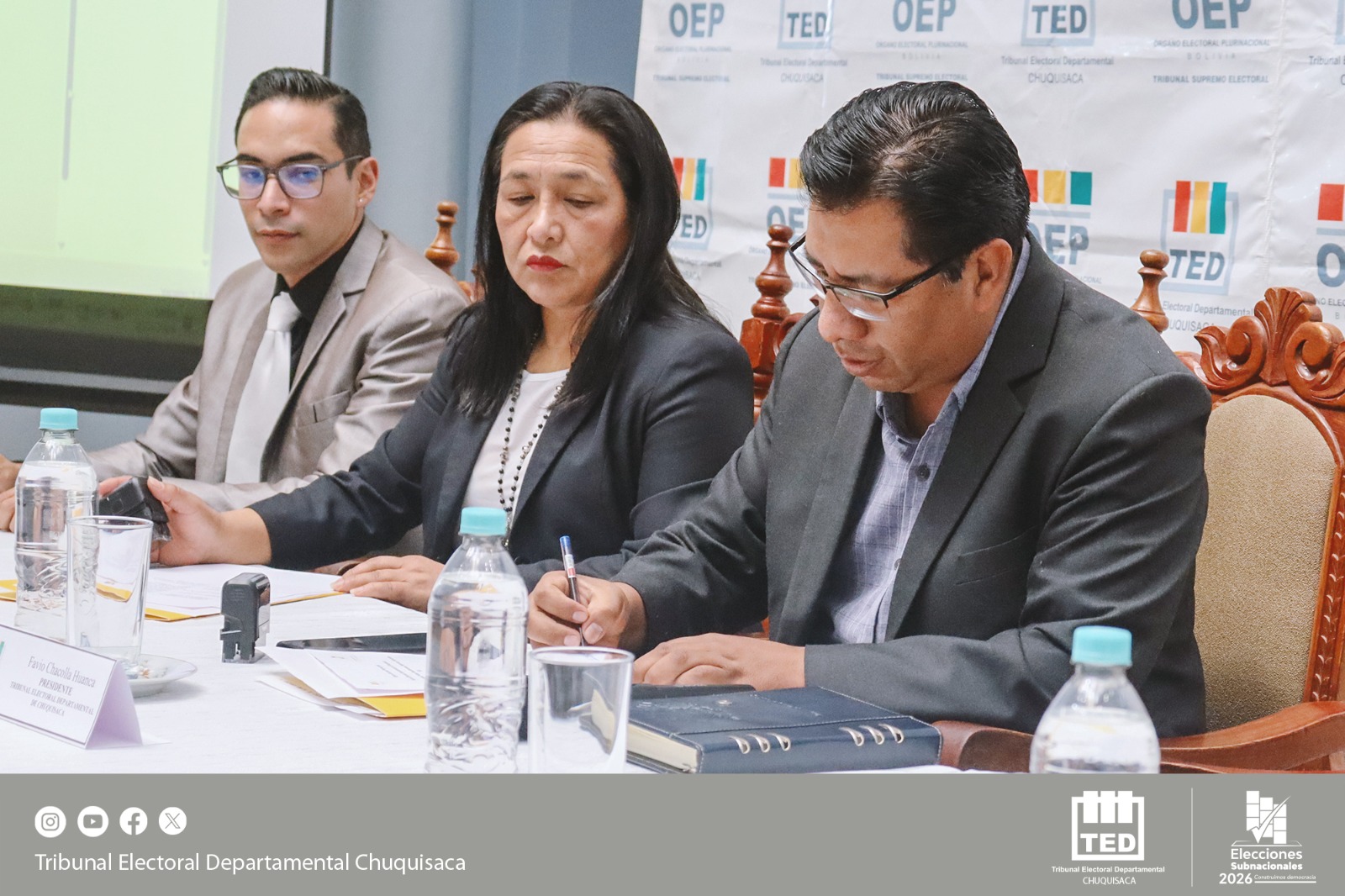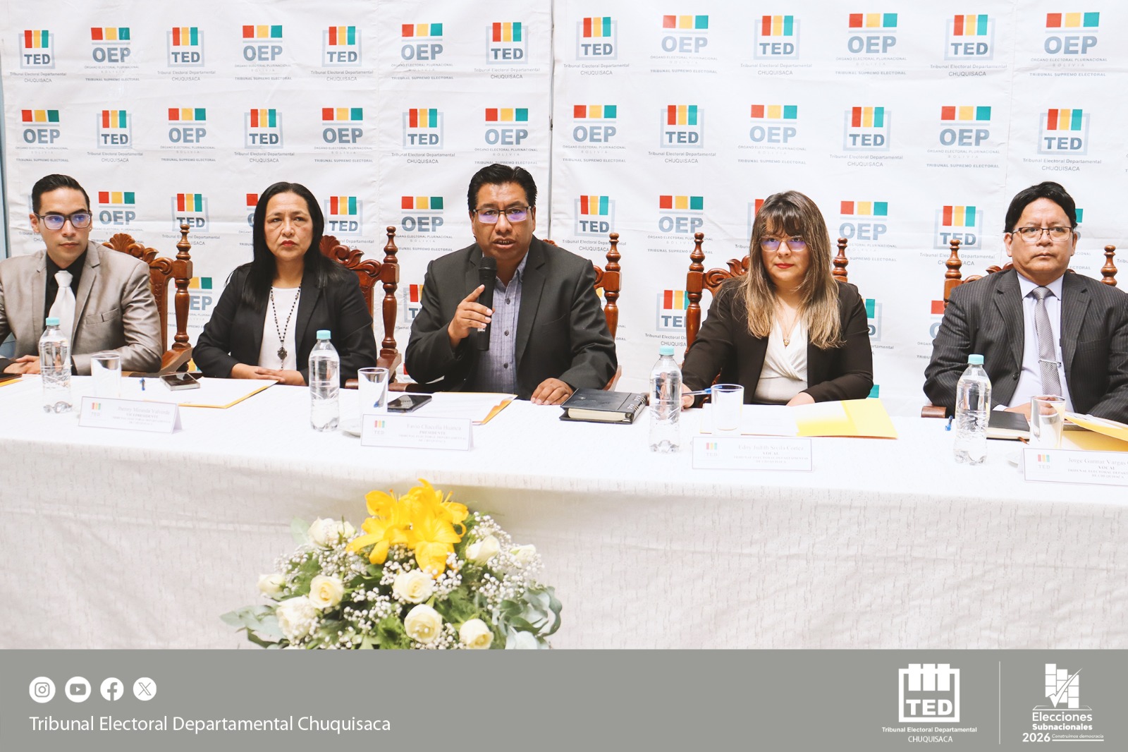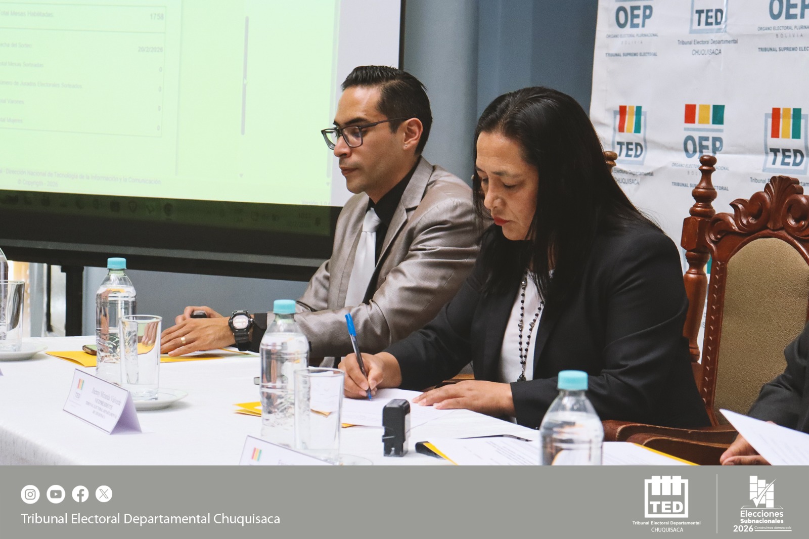 La Sala Plena del TED Chuquisaca, en cumplimiento del calendario electoral de las Elecciones Subnacionales 2026, realizó este 20 de febrero el sorteo público de 10.548 juradas y jurados electorales que administrarán las mesas de sufragio el 22 de marzo, día de los comicios.
