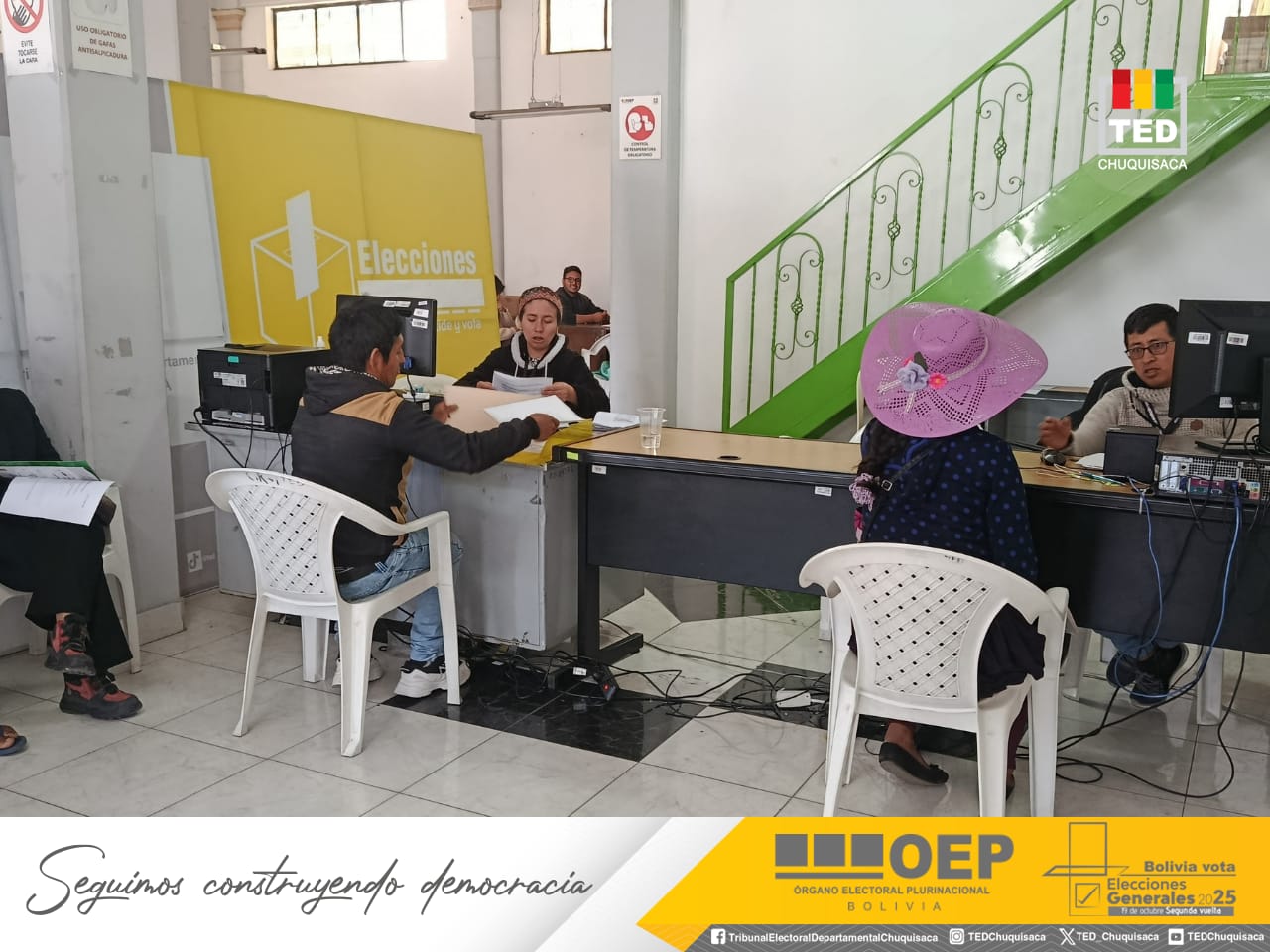 “Todas las personas que requieran hacer el trámite pueden acudir a las oficinas del TED Chuquisaca, ubicadas en la calle Vaca Guzmán Nro. 1, cerca de la parada a Tarabuco, de 8:30 a 16:30 de manera continua. Les recordamos que tienen 30 días para realizar el trámite, es decir, hasta el 18 de noviembre”, informó el presidente del TED Chuquisaca, Mauricio del Río.