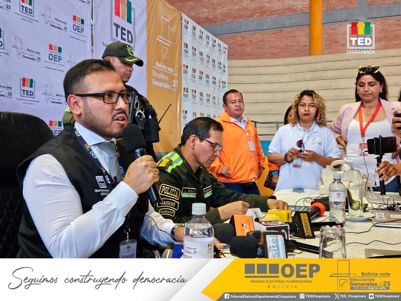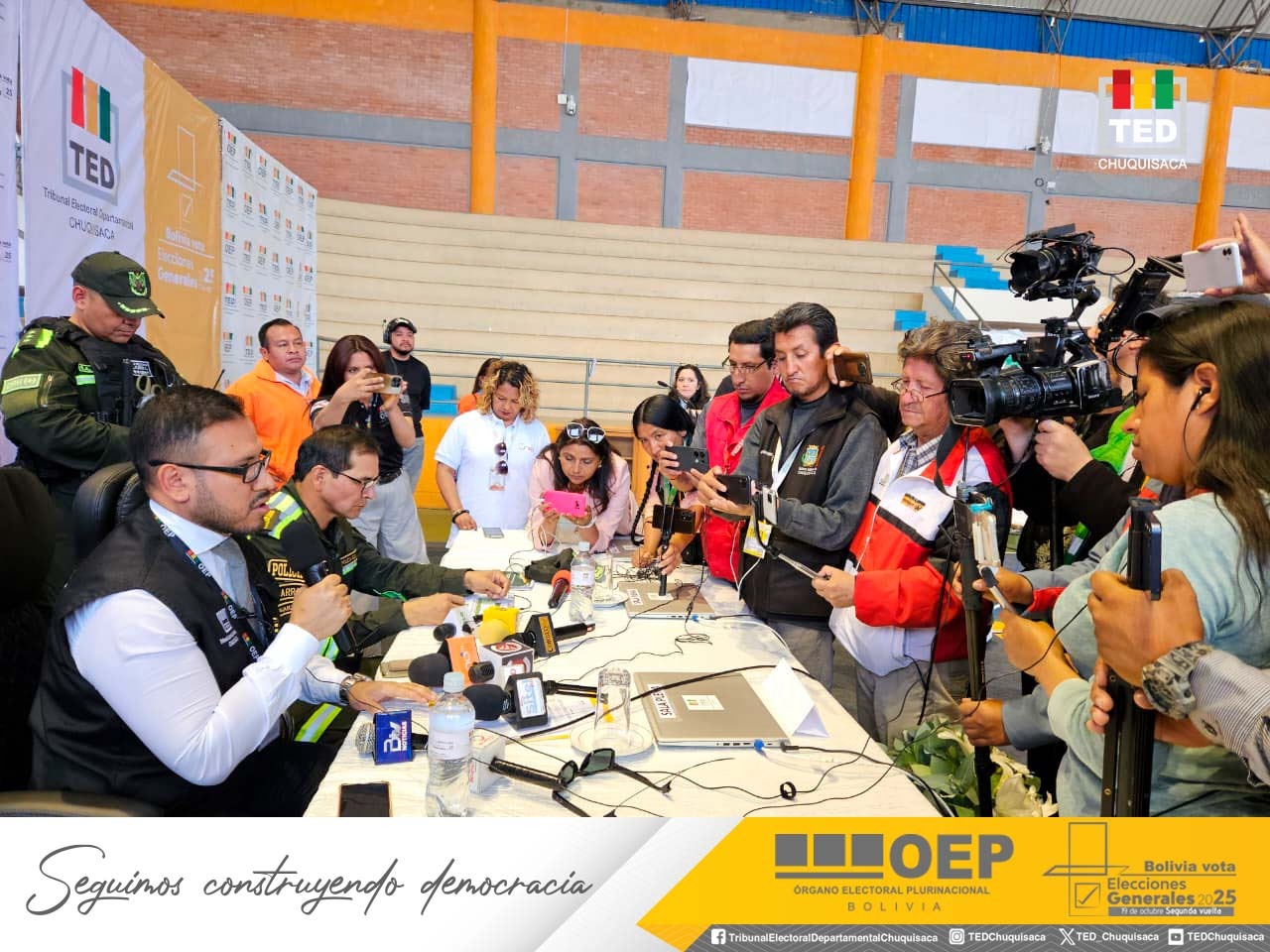 De igual manera, indicó que ninguna mesa del departamento había cerrado hasta el reporte de media jornada realizado en una conferencia de prensa desde el Centro Departamental de Logística (CDL), instalado en el coliseo Max Toledo. En este acto también estuvo presente el comandante departamental de la Policía de Chuquisaca, general Juan Román Peña.