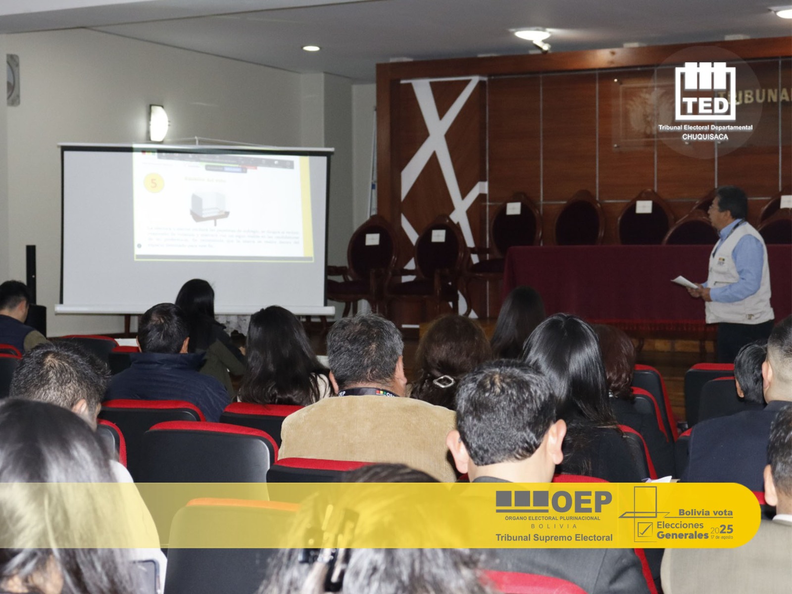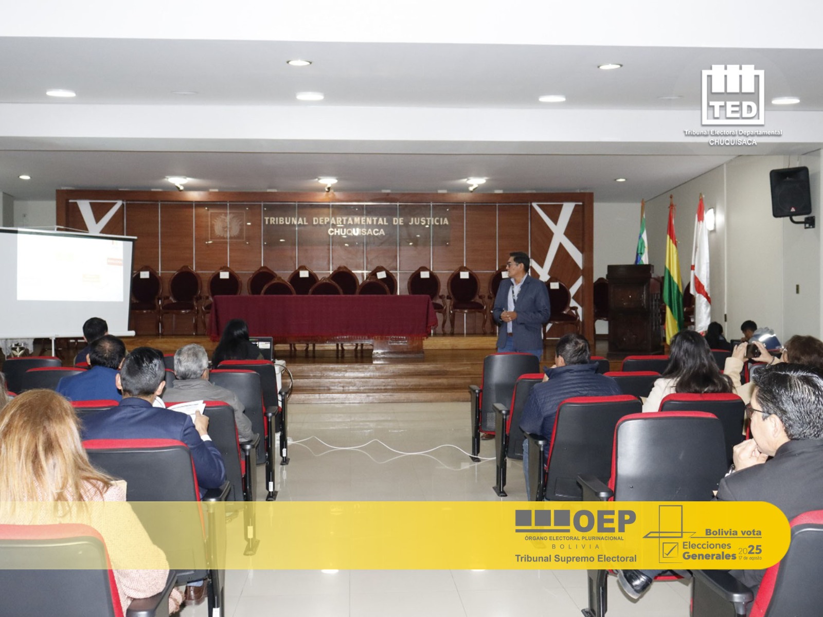 Este viernes 25 de julio, las juezas y los jueces electorales de distintos municipios de Chuquisaca participaron en un taller organizado por el Tribunal Electoral Departamental (TED) de Chuquisaca y el Servicio Intercultural de Fortalecimiento Democrático (Sifde), con miras a las Elecciones Generales 2025 que se realizarán el 17 de agosto.