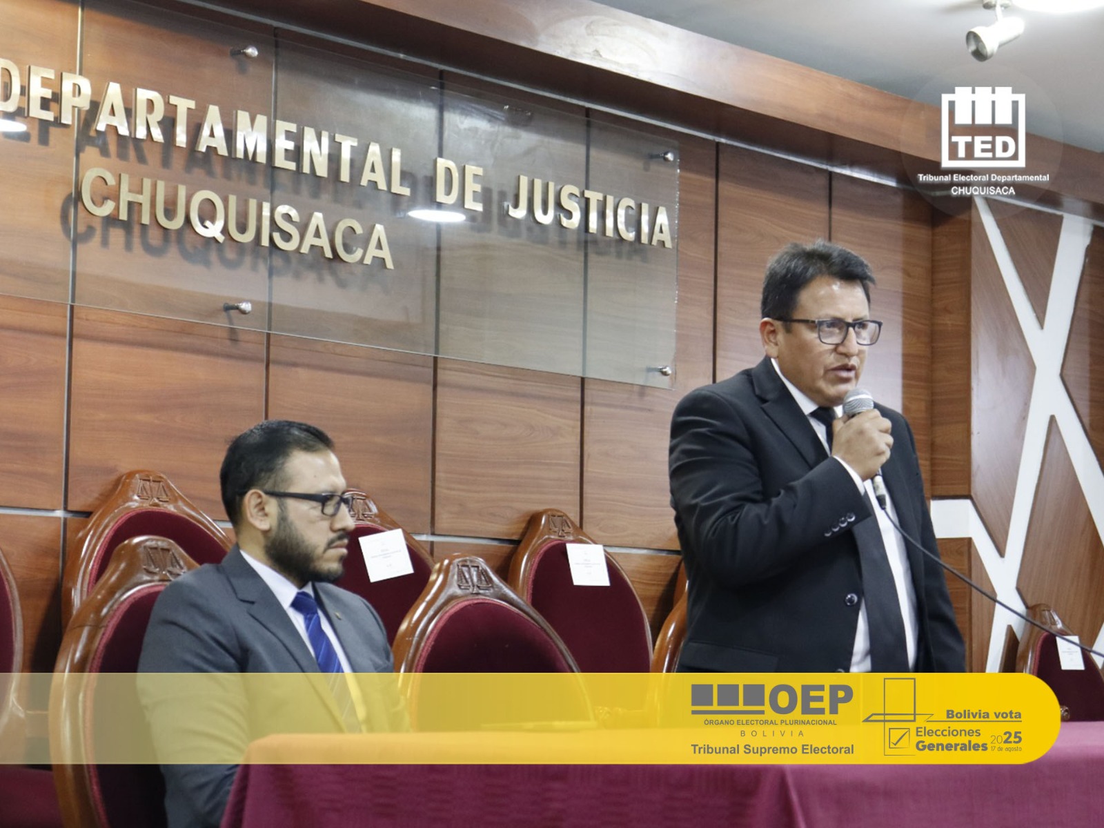 En cumplimiento de la actividad 7 del calendario electoral y bajo las directrices del Tribunal Supremo Electoral, el TED Chuquisaca designó en abril a 65 juezas y jueces electorales para 476 recintos electorales. Según la normativa vigente, su mandato concluirá 90 días calendario después de finalizado el proceso electoral.