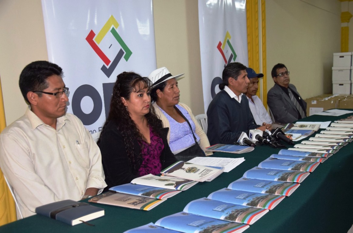 En el caso de Sicaya, se entregaron 1.500 ejemplares de su proyecto de Carta Orgánica al presidente del Concejo Municipal Honorato Brañez. Asimismo se entregó un lote de 3.180 ejemplares del proyecto de Carta Orgánica a la concejala del municipio Delia Perez; y 29.410 ejemplares y a la presidenta del concejo municipal de Puerto Villarroel, Victoria Merubia.
