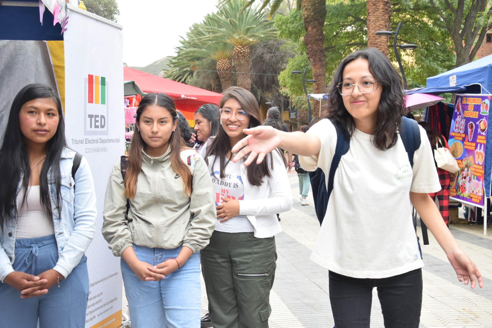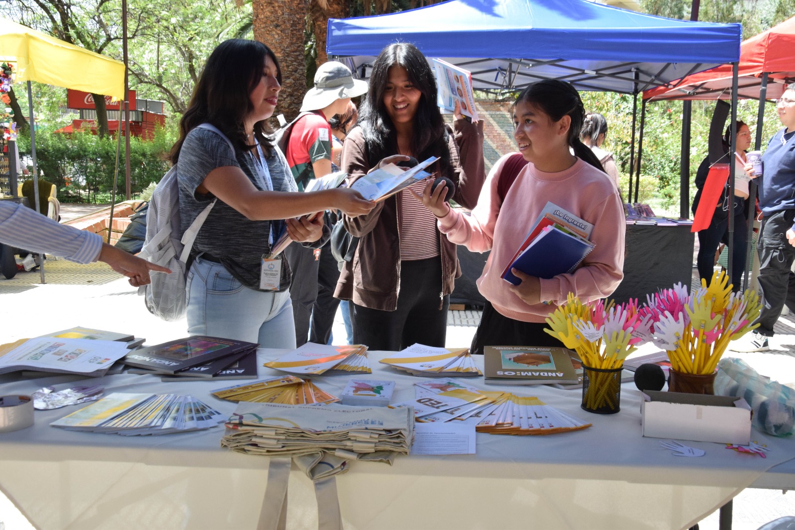 En representación del TED Cochabamba, la presidenta Ruth Pontejo encabezó la participación institucional, acompañada por personal del área de Educación y Comunicación del Sifde, quienes instalaron un stand informativo para difundir contenidos sobre los derechos políticos, la participación ciudadana y las acciones de fortalecimiento democrático que impulsa el Órgano Electoral Plurinacional (OEP).