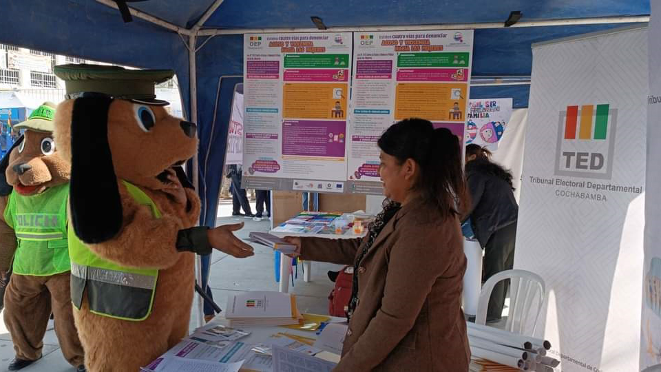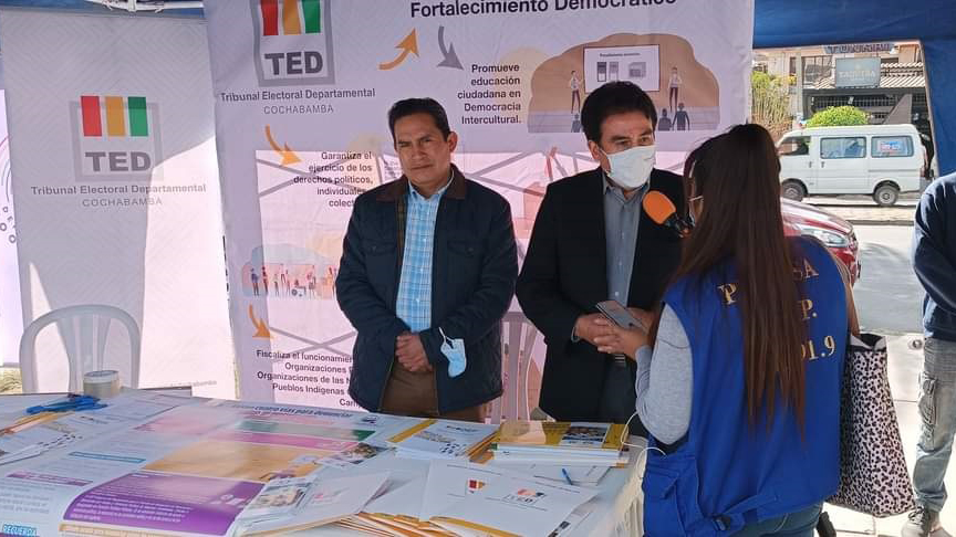 El Tribunal Electoral Departamental (TED) Cochabamba, a través del Servicio Intercultural de Fortalecimiento Democrático (Sifde), participó en la feria por el Día Nacional contra el Racismo y toda forma de Discriminación, que se realizó en el frontis del estadio Felix Capriles este miércoles 24 de mayo.