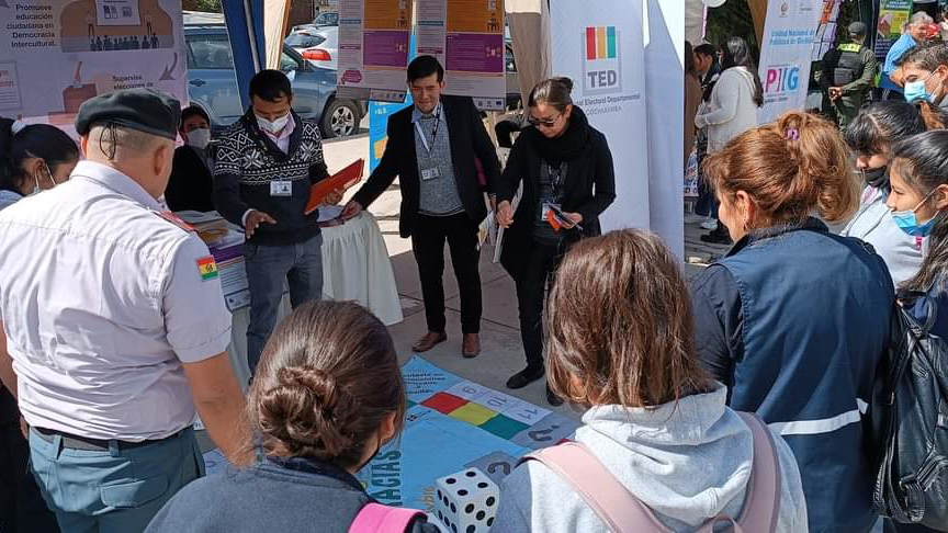 Es por eso que tanto instituciones públicas, privadas y el sistema educativo boliviano realizan actos públicos de educación, prevención y sensibilización en contra del racismo y toda forma de discriminación. En ese contexto, el TED Cochabamba está comprometido con esta tarea y se hizo presente con un stand donde se brindó información acerca de los servicios que brinda el ente electoral a la población cochabambina, también se acercó al público joven mediante juegos interactivos.
