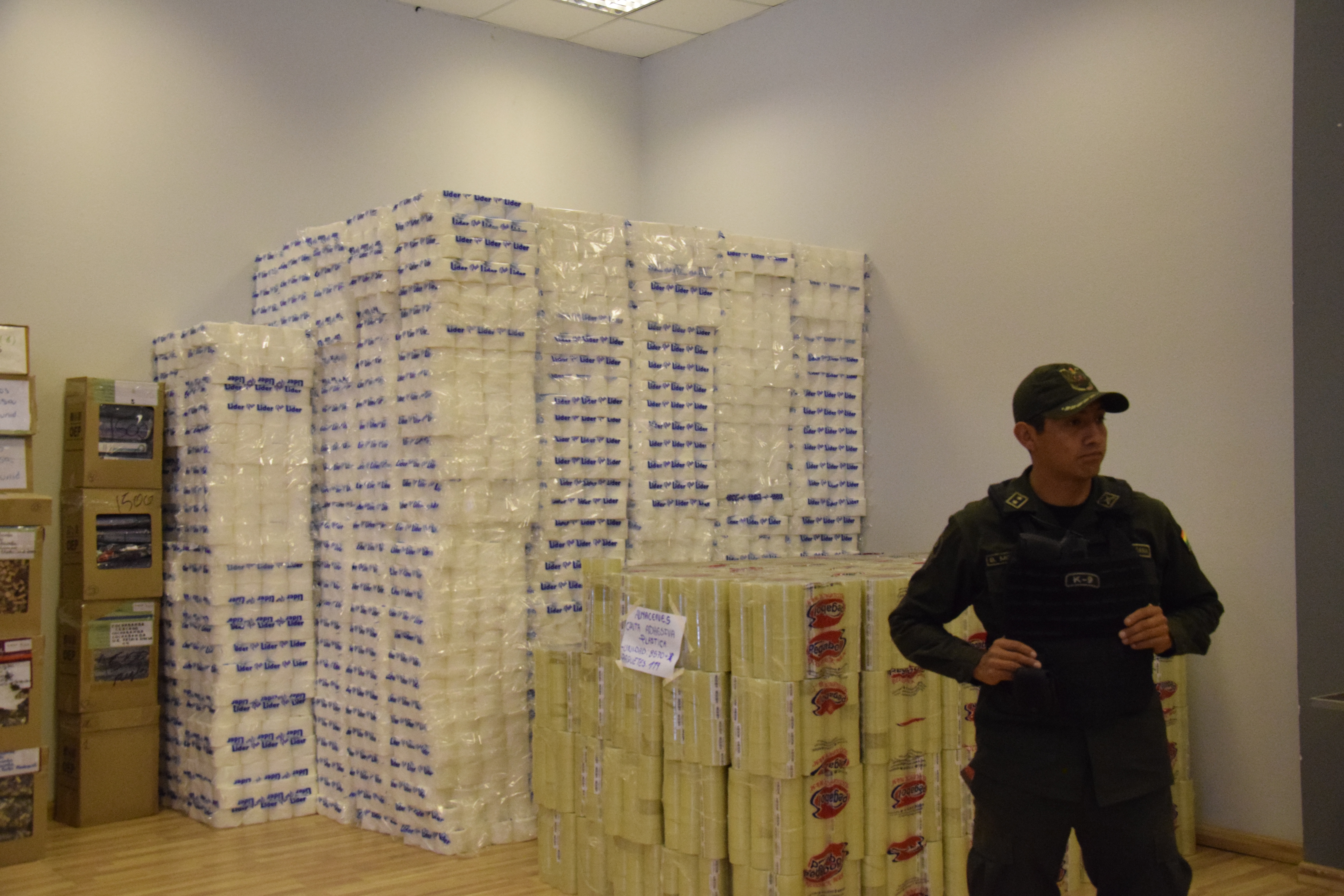 El material electoral proveniente del Tribunal Supremo Electoral se remite al Centro de Operaciones Logísticas (COL), donde es recibido por el CDL, en tres etapas. En la primera se entregan los precintos de seguridad; en la segunda se reciben diversos materiales para impresión, además de material de escritorio, y en la tercera etapa se recibe el material sensible, como las papeletas de sufragio y las actas electorales.