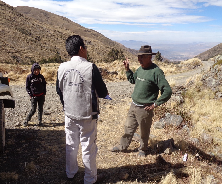 El trabajo se realizó a solicitud de las organizaciones sociales ante el TED Cochabamba, a fin de que éstos puedan acceder a la nueva creación de asientos y recintos para garantizar su participación y la de las comunidades aledañas durante los procesos electorales.