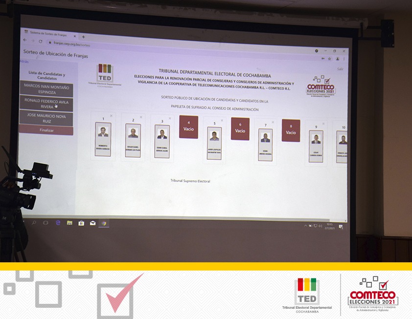 HomeTED Cochabamba sortea la ubicación de candidatas y candidatos en la papeleta de sufragio para la elección de Comteco UBICACIÓN COMTECO 8