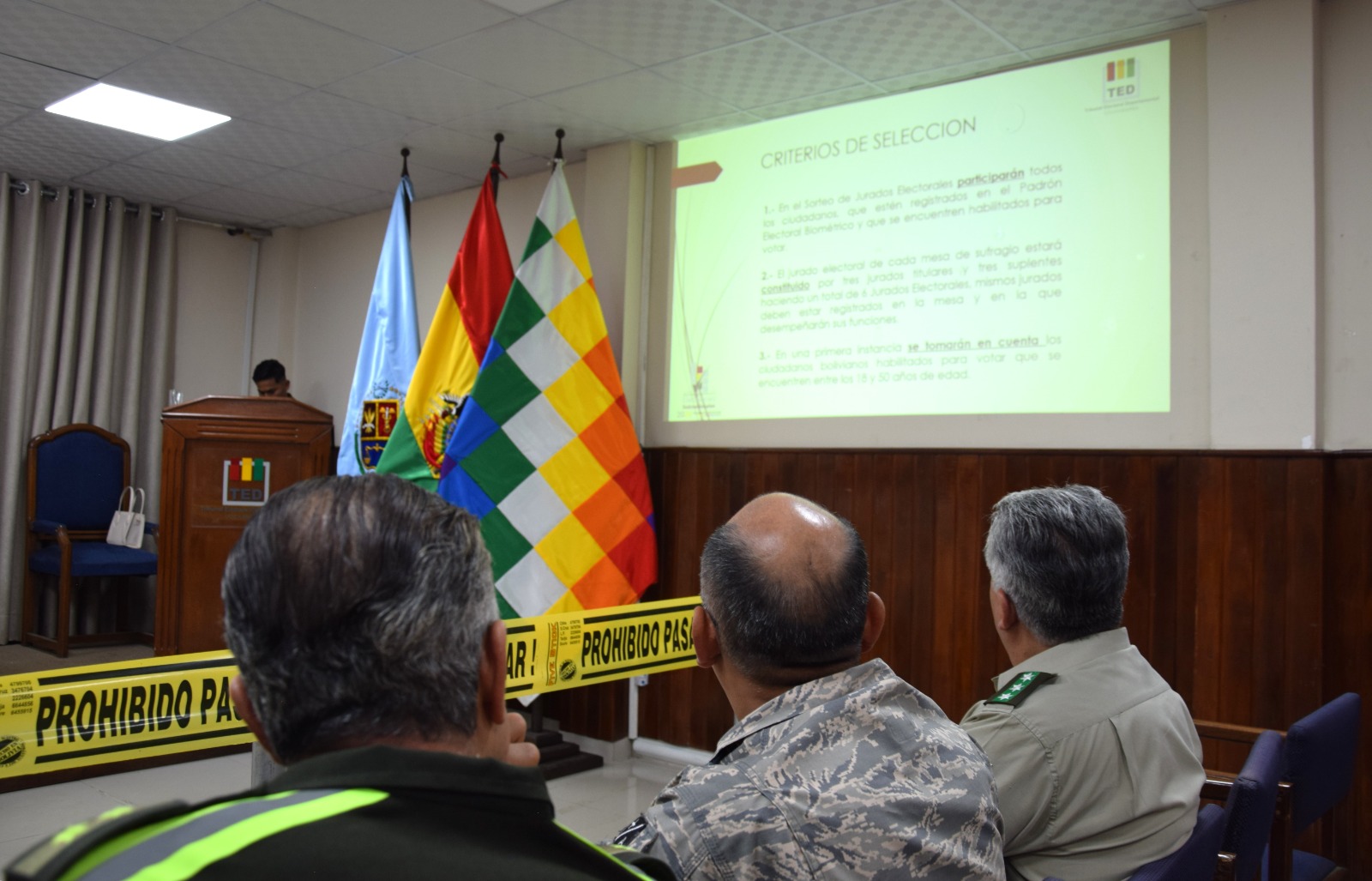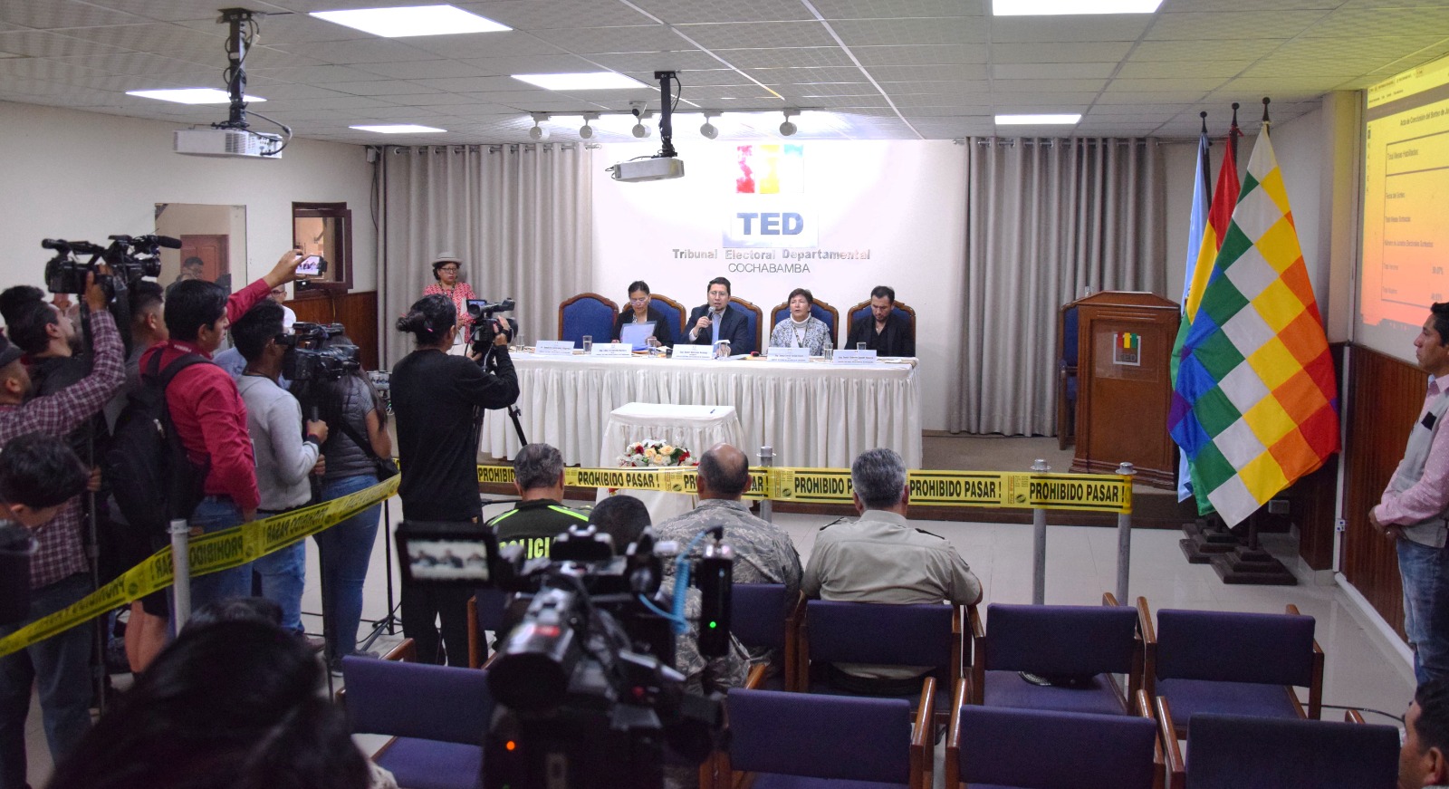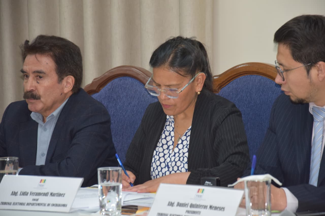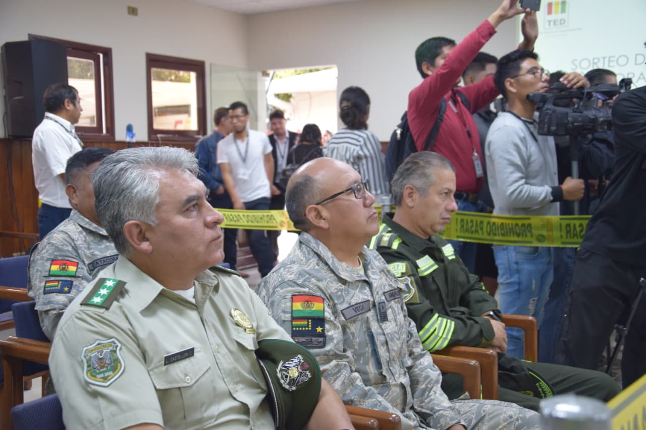 El acto fue presidido por la Sala Plena del TED Cochabamba, conformada por los vocales Daniel Quinteros (presidente), Lidia Veramendi, Danny Knaudt, Juana Vargas y Humberto Valenzuela, quienes llevaron a cabo esta actividad en un acto público que contó con la participación de delegadas y delegados de organizaciones políticas, autoridades de las Fuerzas Armadas, la Policía Departamental y periodistas de varios medios de comunicación.