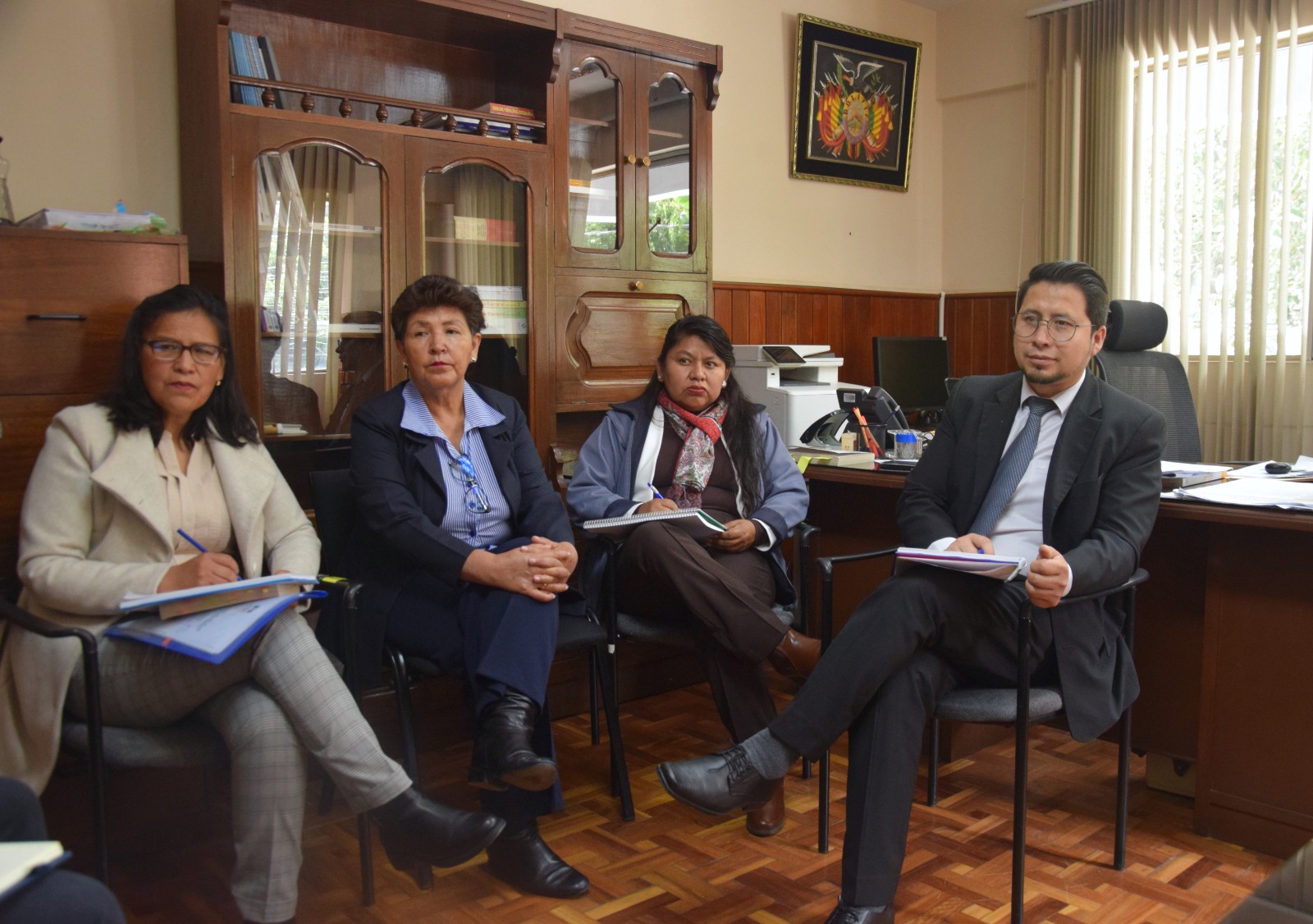 Con el objetivo de fortalecer la coordinación interinstitucional de cara al proceso electoral Elecciones Subnacionales 2026, el Tribunal Electoral Departamental (TED) de Cochabamba sostuvo una reunión de trabajo con la Delegada Defensorial Departamental de Cochabamba, Marioly Álvarez, y su equipo técnico de la institución defensorial.