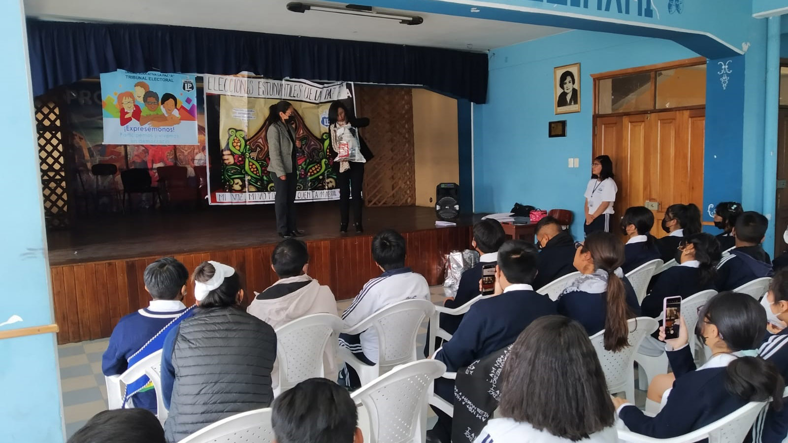 Por su parte, la profesora Demelza Ortega, coordinadora del Área de Ciencias Sociales de la unidad educativa, expresó su agradecimiento por la capacitación que brindó el TED La Paz en democracia intercultural y procedimientos electorales, “hubo una capacitación muy buena y didáctica (...), además que se nos dotó de todo el material electoral para el proceso”, subrayó.
