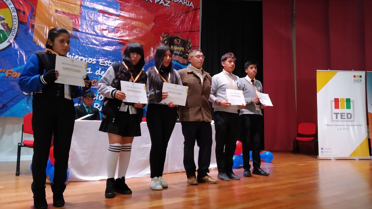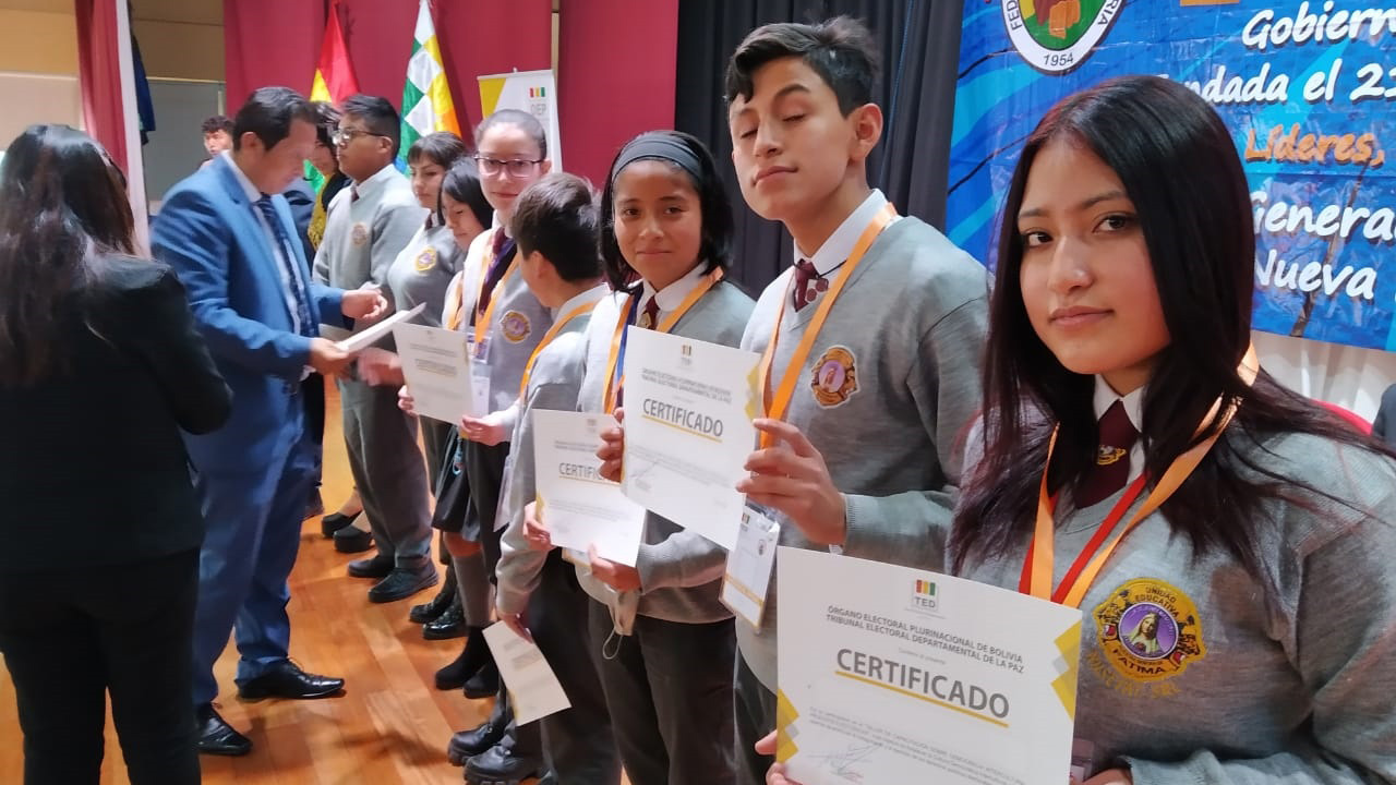 Colegiales de 20 unidades educativas de los macrodistritos Periférica y San Antonio del municipio paceño recibieron, este lunes 22 de mayo del Tribunal Electoral Departamental (TED) La Paz, sus respectivas credenciales para ejercer como miembros de sus gobiernos estudiantiles.