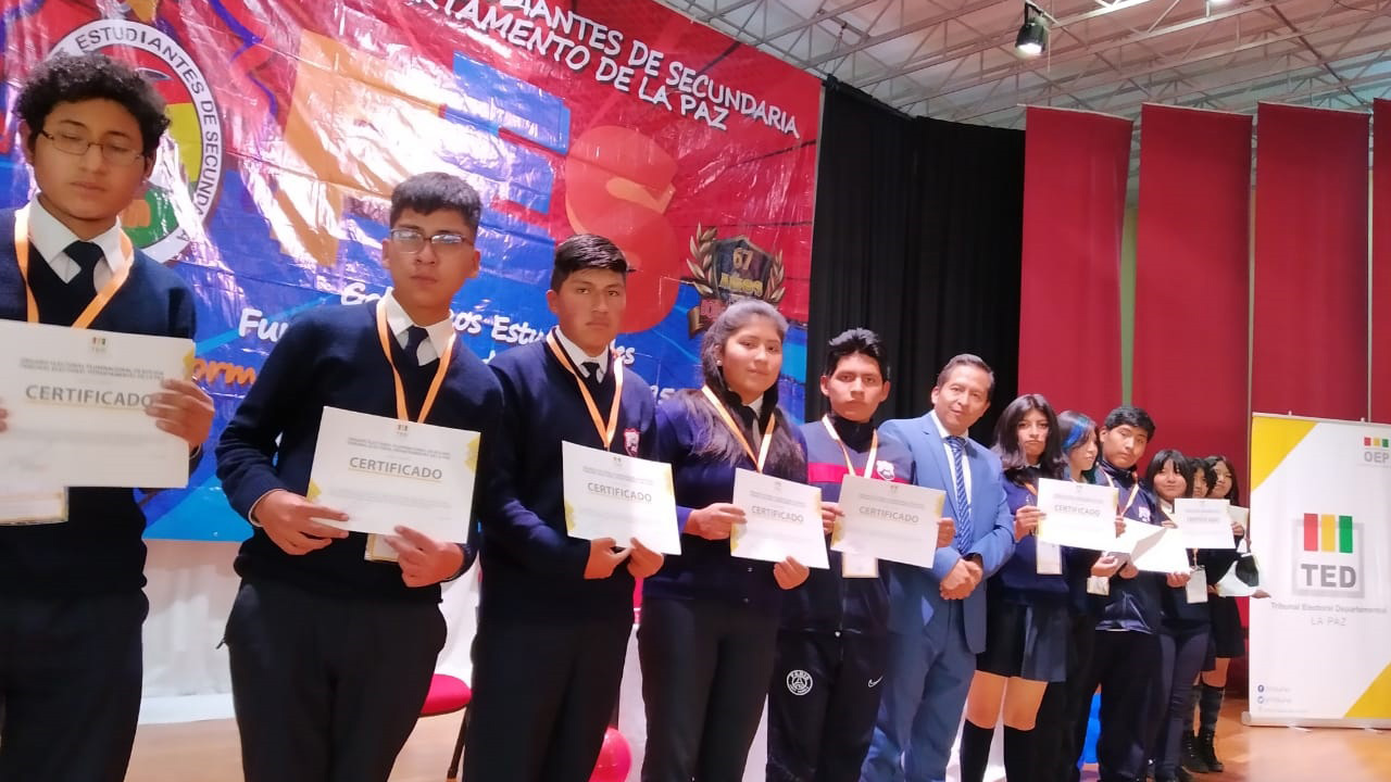 “Nos alegra que actualmente estemos sembrando la cultura democrática intercultural en nuestros jóvenes, con paridad entre hombres y mujeres. El objetivo es que en un futuro, cuando ejerzan sus derechos políticos ciudadanos, esta actividad sea normal”, resaltó el Vicepresidente del TED La Paz.