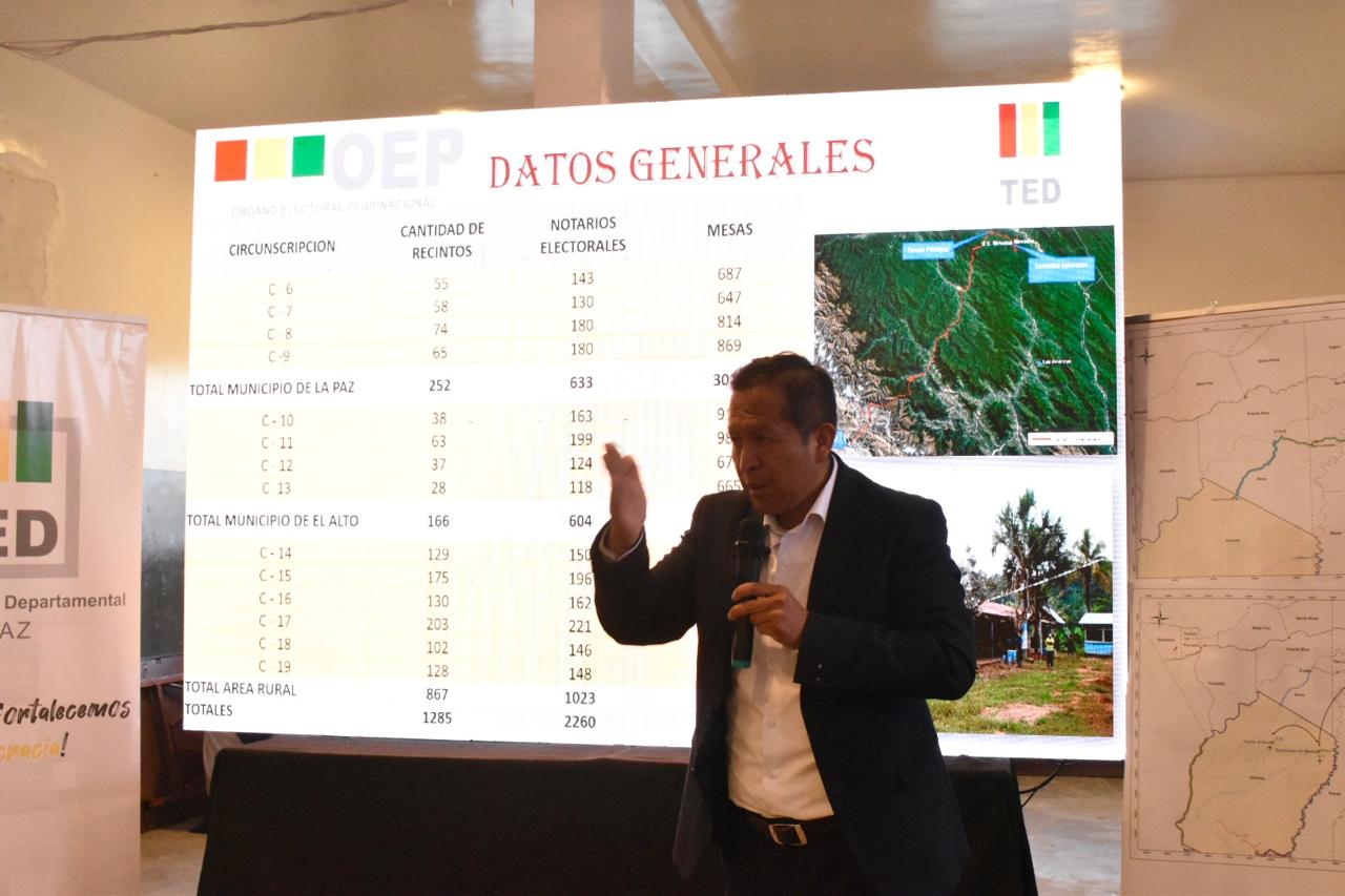 “La Paz cuenta con tres pisos ecológicos: altiplano, valles y Amazonía. Esta diversidad geográfica exige una planificación específica para asegurar la llegada del material electoral, especialmente en zonas alejadas como San Fermín, El Tigre, Puerto Pérez y Araona”, explicó el vocal Antonio Condori.