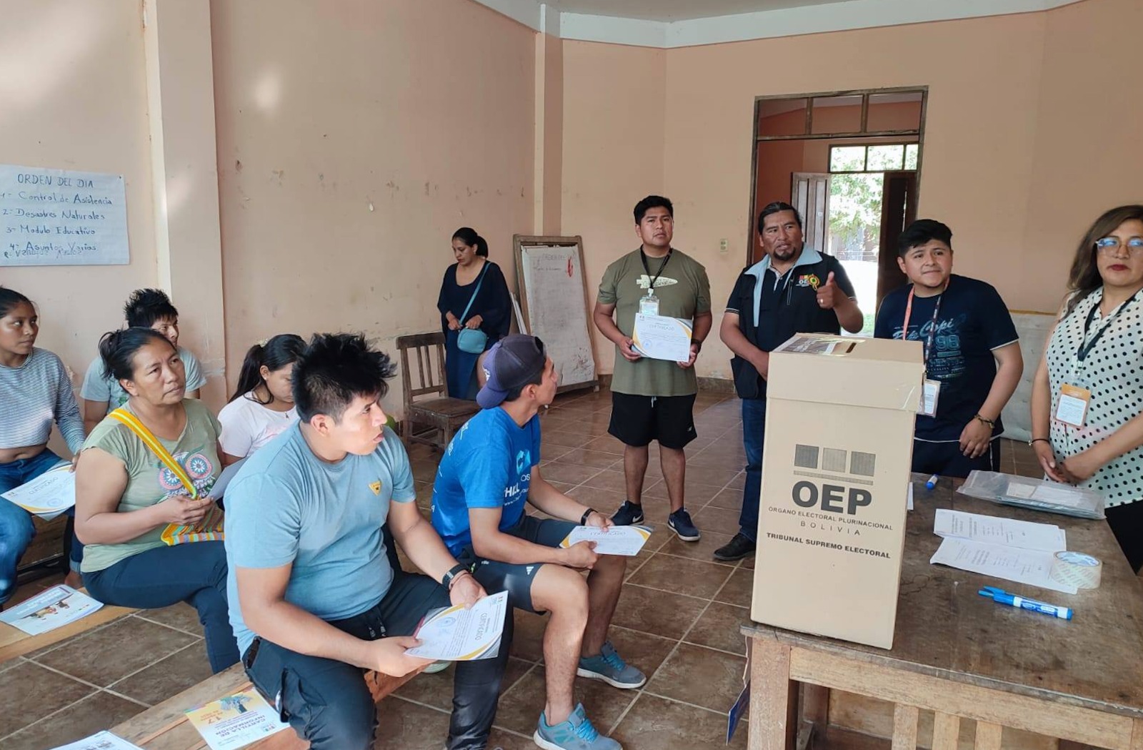 Asimismo, informó que los notarios electorales de zonas rurales se desplazaron a la ciudad el pasado sábado para completar su contratación, recibir capacitaciones y recoger los materiales necesarios para su labor. En ese sentido, el personal del TED La Paz trabajó jornadas extendidas, incluidos fines de semana.