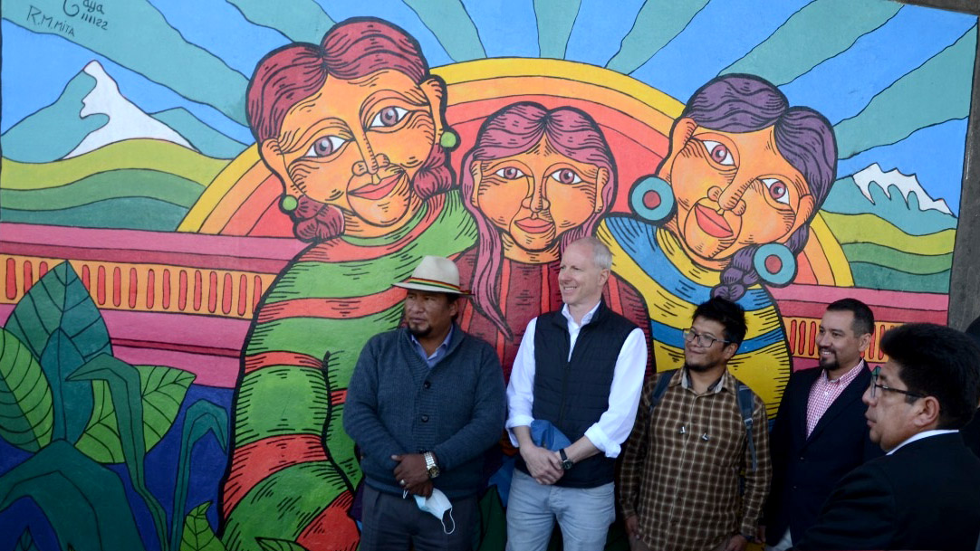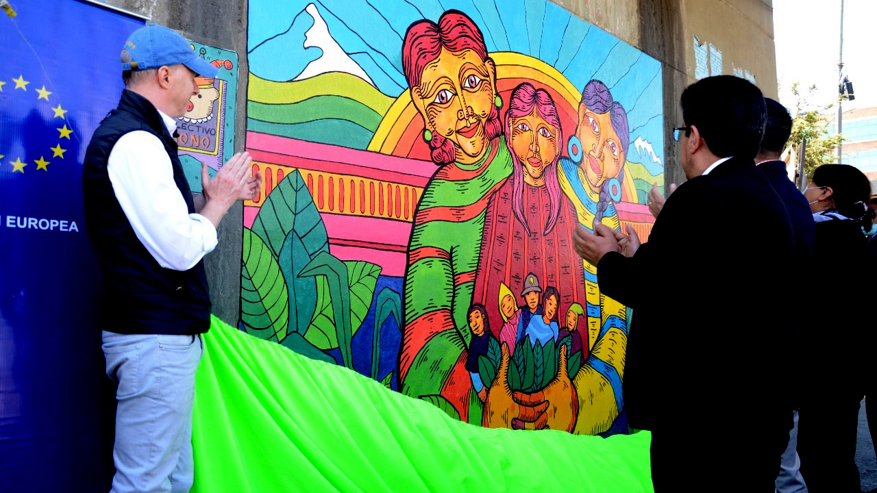 La revelación del mural contó con la presencia del embajador en Bolivia de la Unión Europea, Michael Doczy, el representante adjunto del PNUD en Bolivia, Dennis Funes, el presidente y vocales del Tribunal Electoral Departamental (TED) de La Paz, Sabino Chávez, Franz Jiménez, Zonia Yujra y Gisela Perez, además de algunos medios de comunicación.